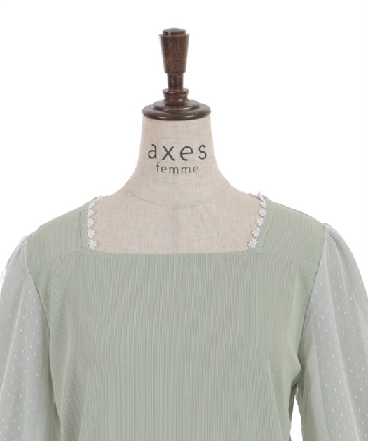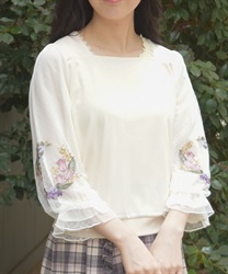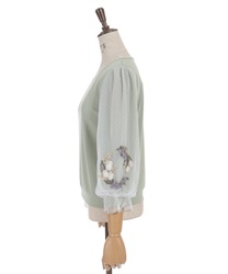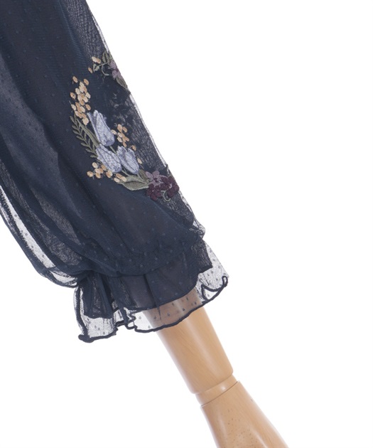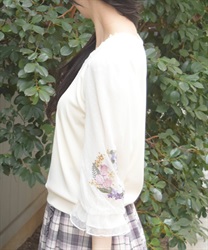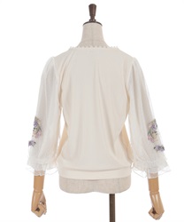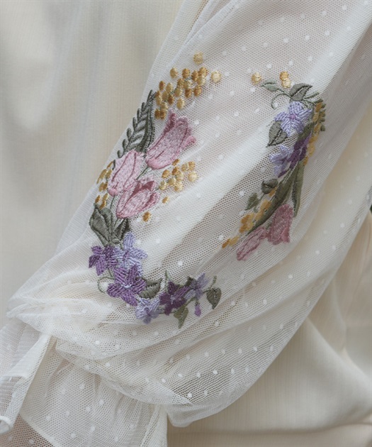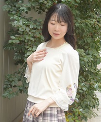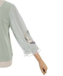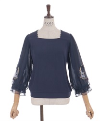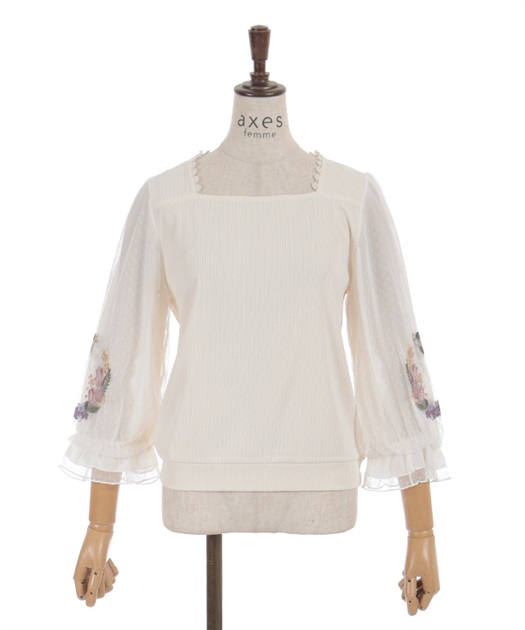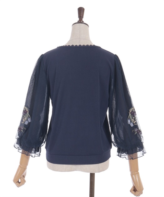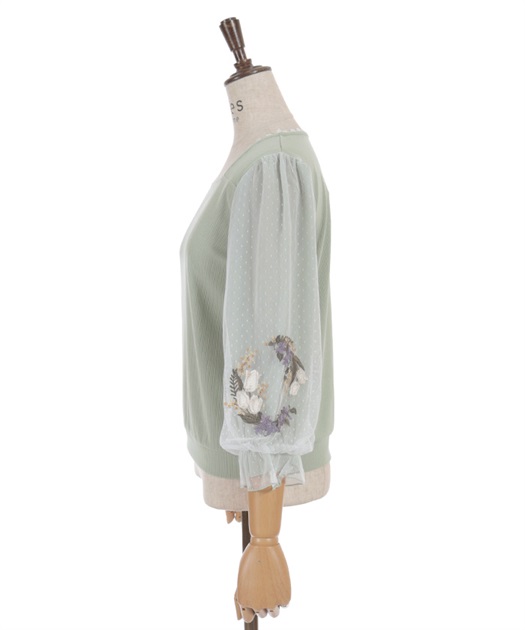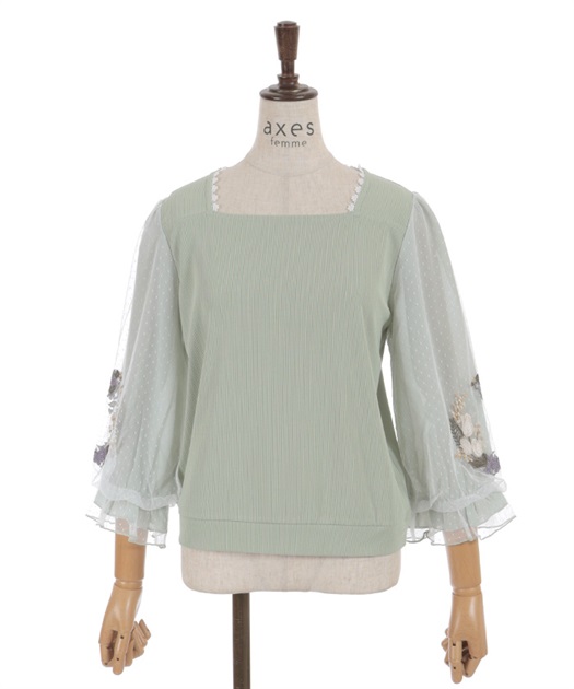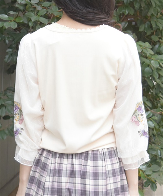 トレンドライクなドットチュール×刺繍の袖デザインがポイントのトップスです。