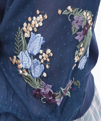 春らしくチューリップを中心に、ミモザとスミレを組み合わせた季節感のあるこだわりの刺繍がポイント。