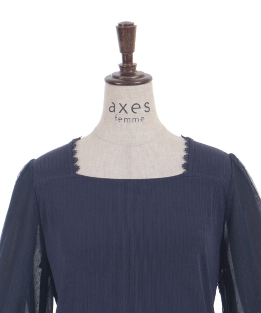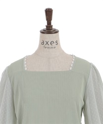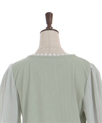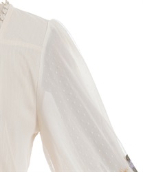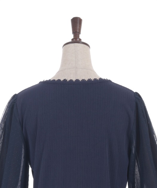 ポフッとしたボリューム袖のドットチュール裏にはシフォンを重ね、程よい透け感で、今の時期にちょうど良く着やすいアイテム。