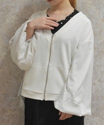 無地トップスに重ねれば主役感が出て、ワンピースに合わせればきれいめなお出かけ仕様にまとまる万能アイテム。季節の変わり目や室内の冷え対策にも使いやすく、コーデに差がつく一着。