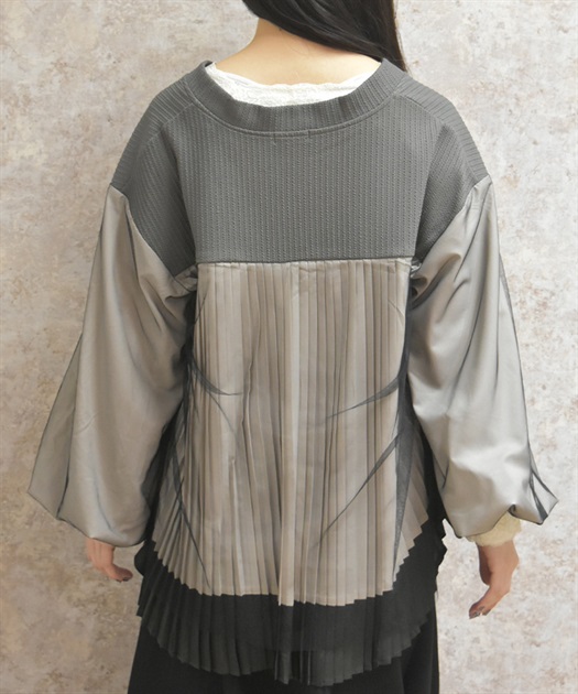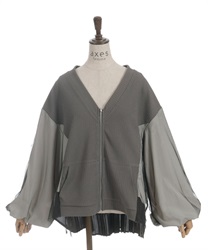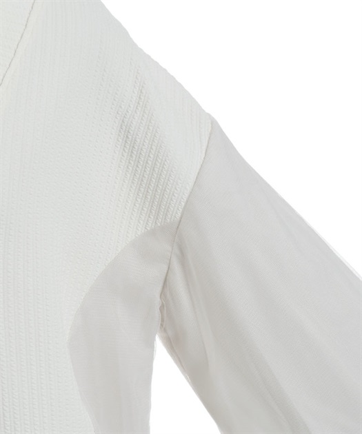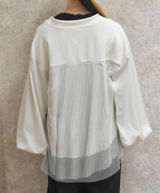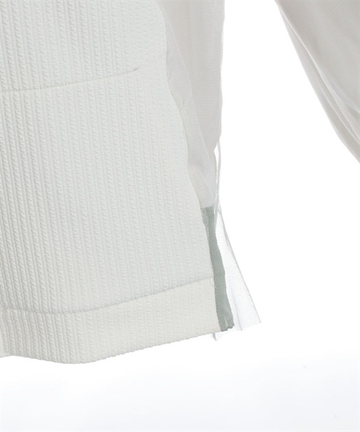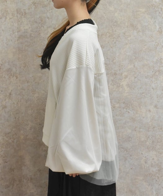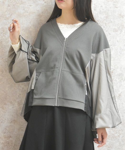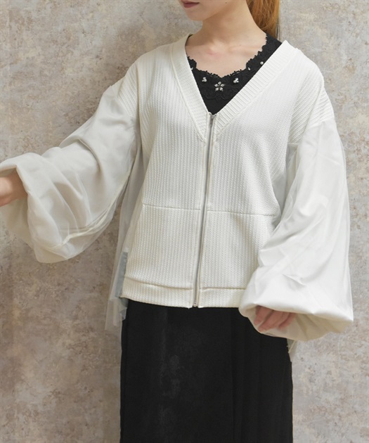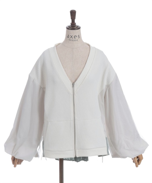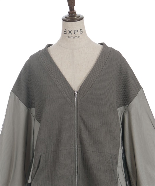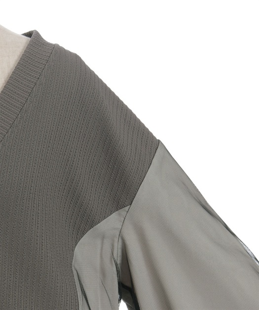 軽やかなチュール切替が目を引く、さっと羽織るだけで雰囲気が変わるデザインカーディガン。