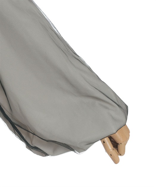 落ち着いたトーンのチュールが軽やかな動きを生み、シンプルなカーディガンに奥行きと華やかさをプラスします。チュールのニュアンスで、甘さをほどよく抑えた大人っぽい印象にまとまります。