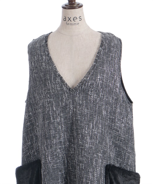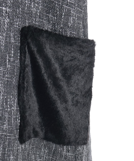 上品なツイード素材を使用したジャンスカ。シンプルなシルエットの中に、存在感のあるポケットデザインを取り入れた一枚です。