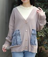 デニム素材のポケットがアクセントになり、程よくカジュアル感を楽しめるデニムポケットカーディガン。