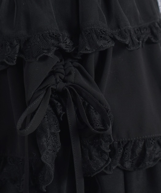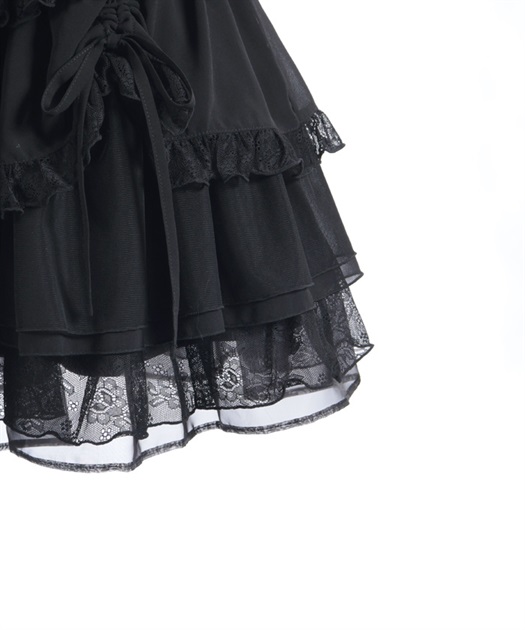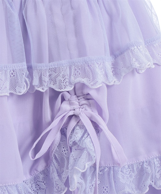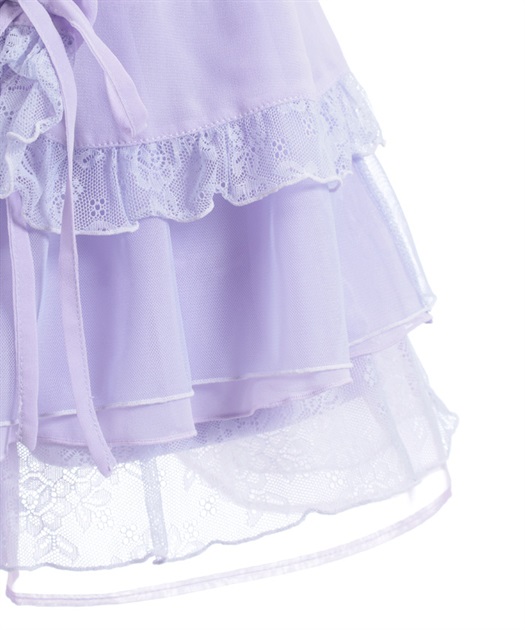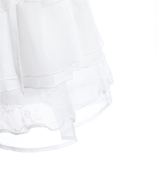 レースやオーガンジーなどの異素材を組み合わせた、裾にかけてボリュームのあるデザイン。