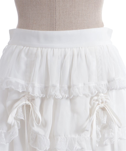 ドロストシルエットがガーリーな、ティアードフリルのスカート