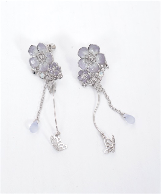 揺れるビーズと小さな蝶のモチーフが華やかなアクセントになっています。