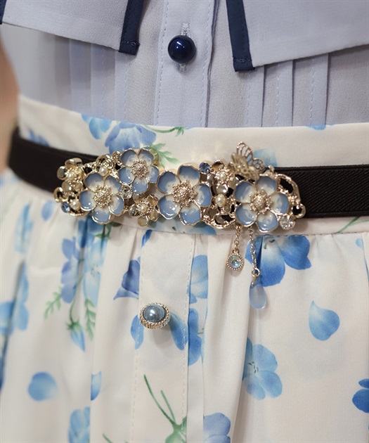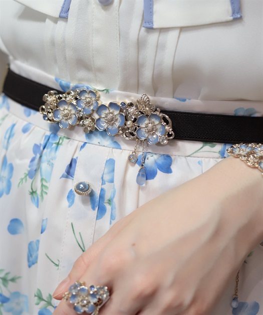 華やかな優しさを持つネモフィラモチーフの細ゴムベルトです。