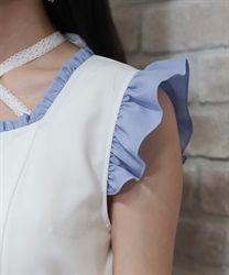 バイカラーデザインが華やかなワンピースです。
