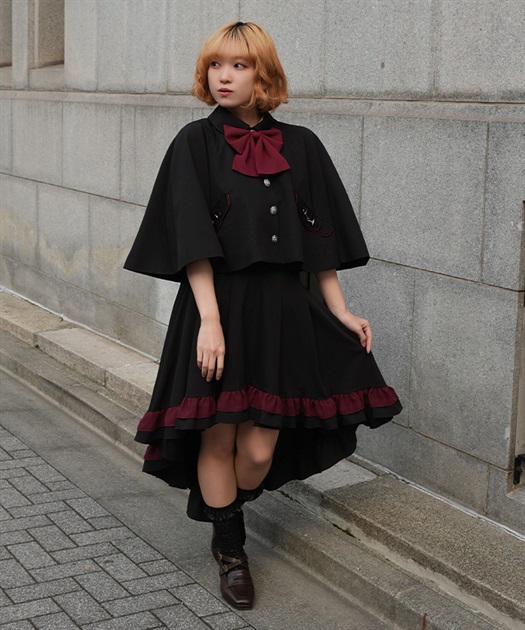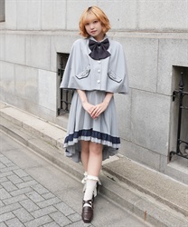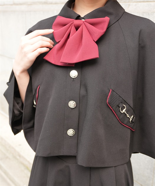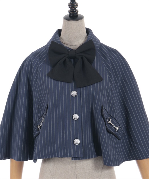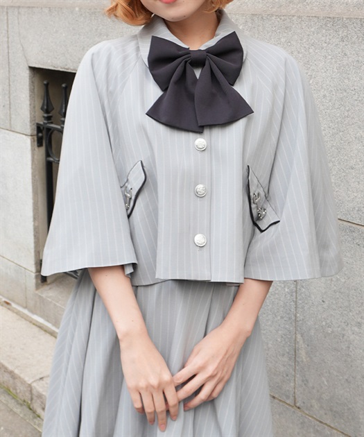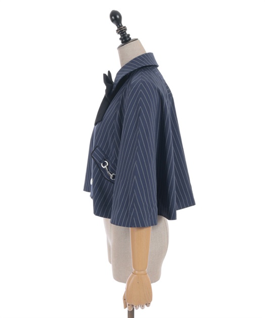 バイカラーリボンが存在感のある、フレアシルエットのケープ