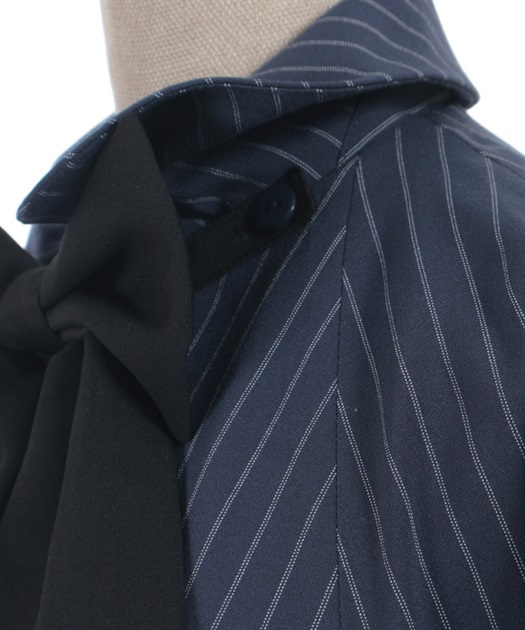 リボンを外して前を開けた着こなしも◎。