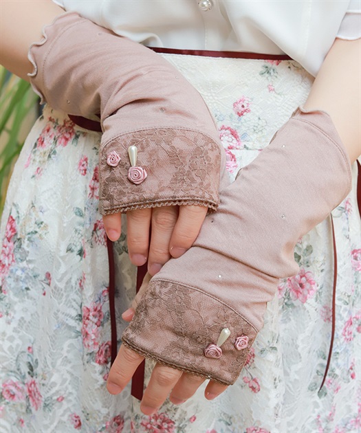 バラモチーフとレースを組み合わせたUVショート手袋です。