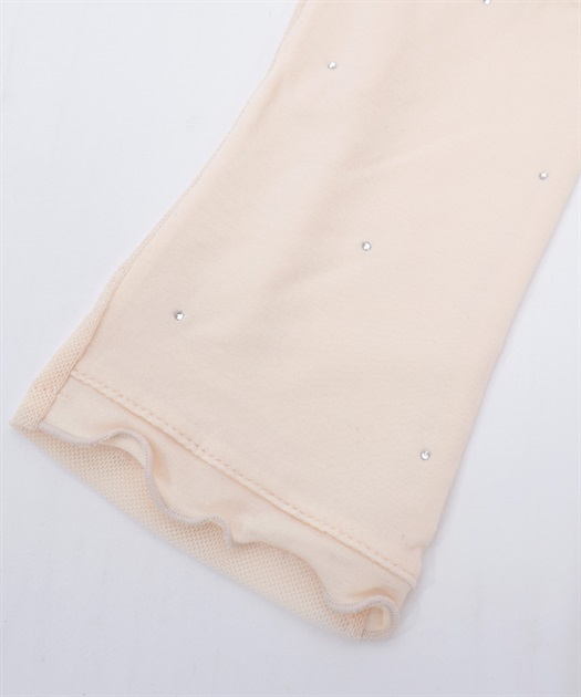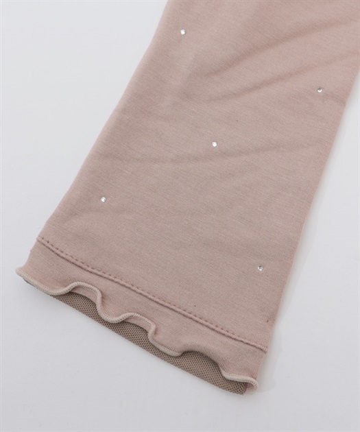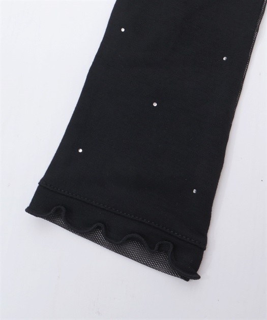 繊細なレース生地を重ね、小さなストーンを散らした上品なデザイン。