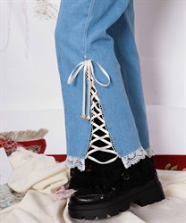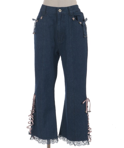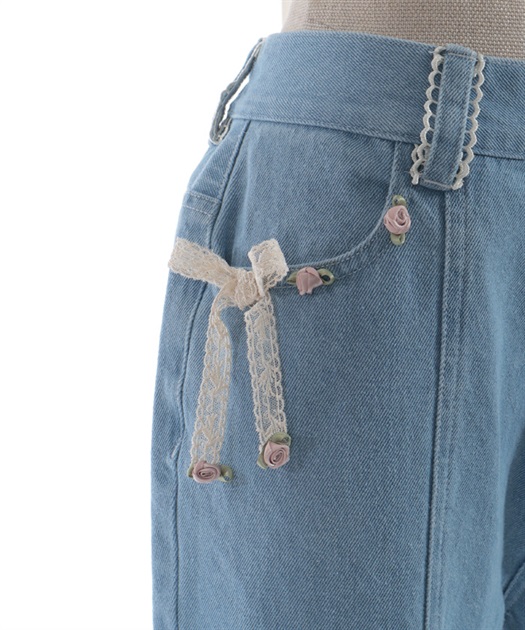 ロマンティックなディテールをふんだんに取り入れた、個性を楽しめるデニムパンツ。