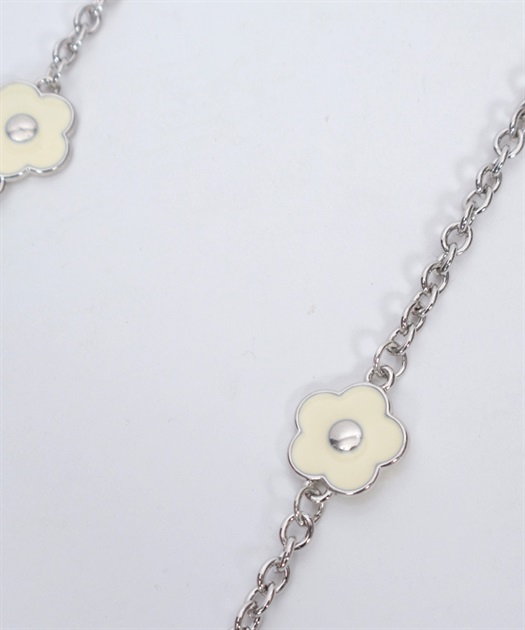 コーディネートに幅広く合わせられるシルバーチェーンがポイント。
