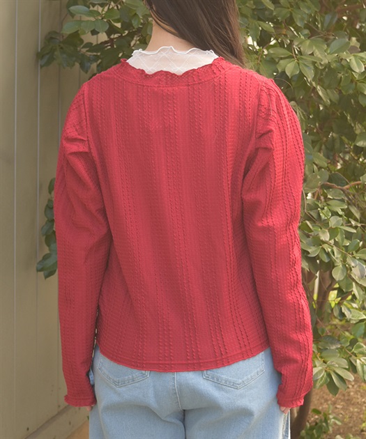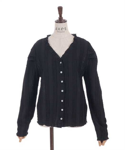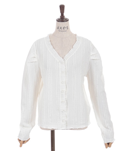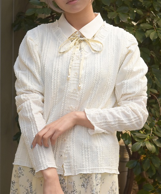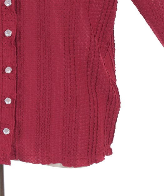 ぽこっとした表面感のあるカットソー素材のカーディガン