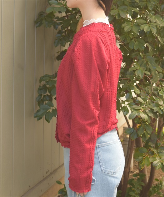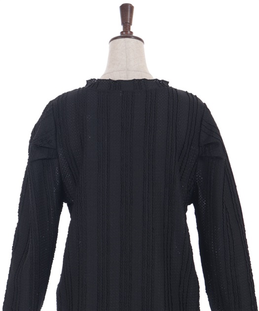 ブラウスやカットソートップスなど中に着るアイテムで印象が変わり、ロングシーズンご着用いただけます。