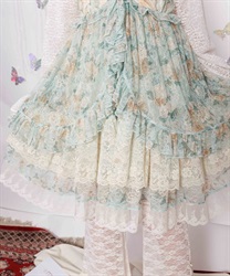 淡いトーンのアイテムと合わせたコーディネートで、春夏らしいやさしい雰囲気に。柄連動のスカートと合わせてロングワンピース風に着こなすレイヤードスタイルもおすすめで、日常の装いにロマンティックな彩りを添えてくれます。