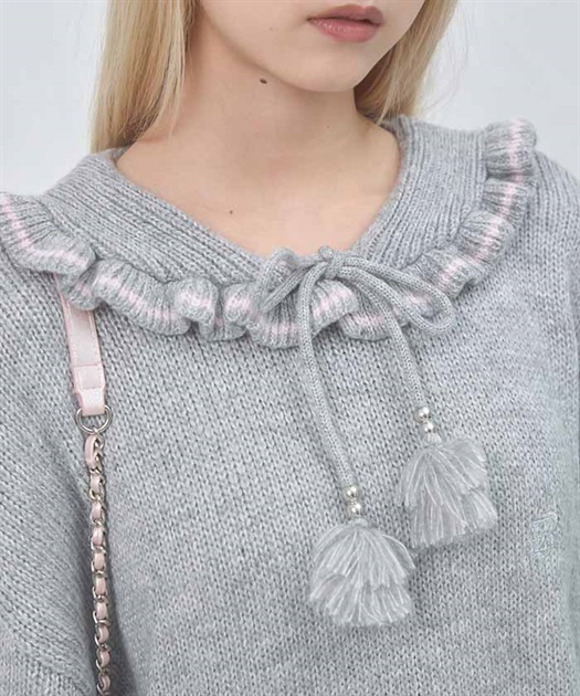 ボリュームのある二段タッセルとシルバービーズが全体を甘すぎない雰囲気に。