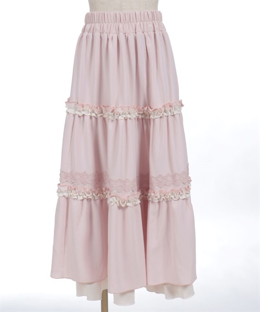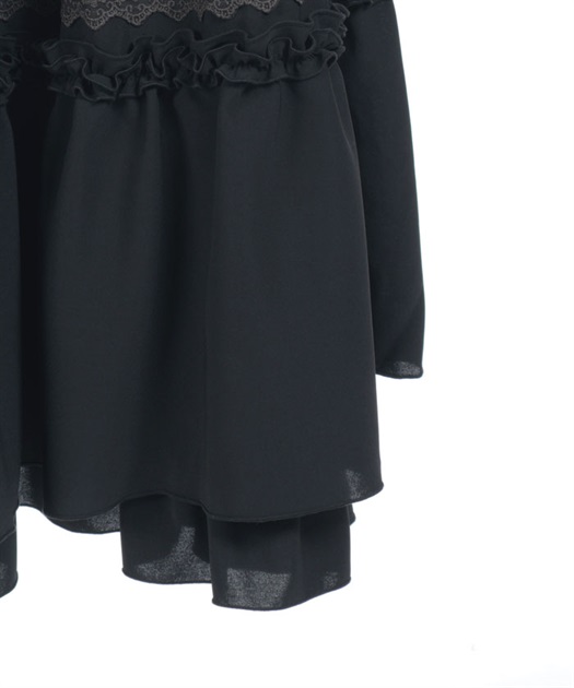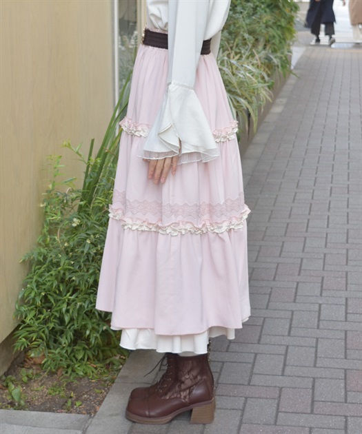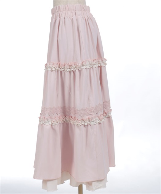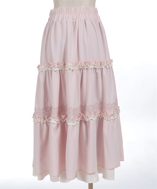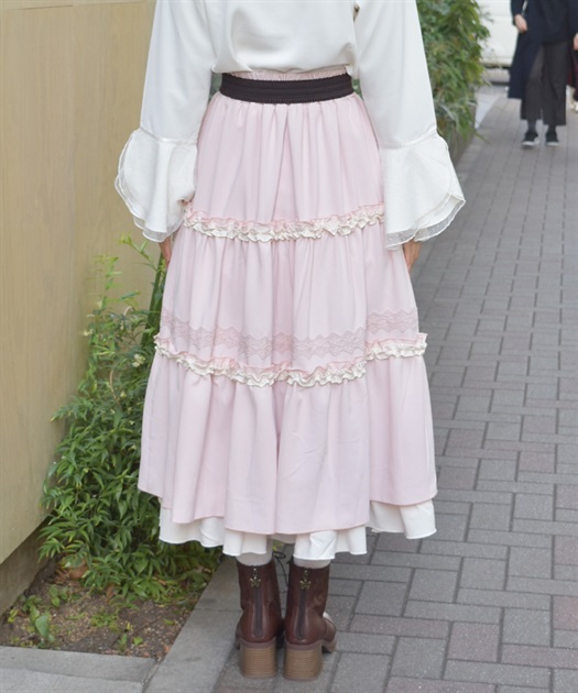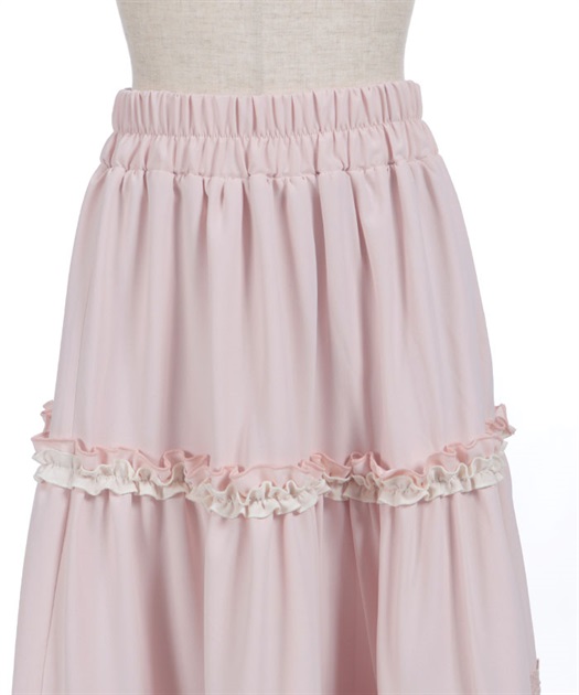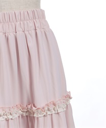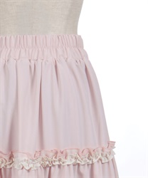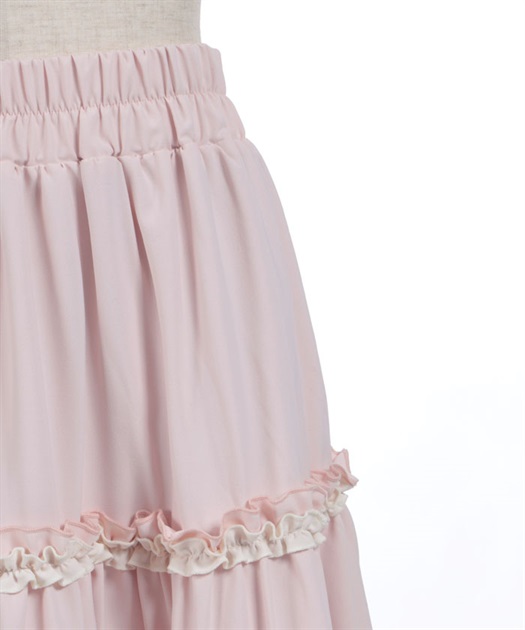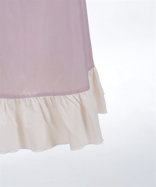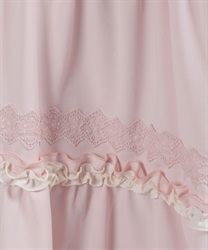 ピンクは配色、クロは同色の共フリルをあしらい、さらにチュールレースも施して、フェミニンでより華やかな印象に。