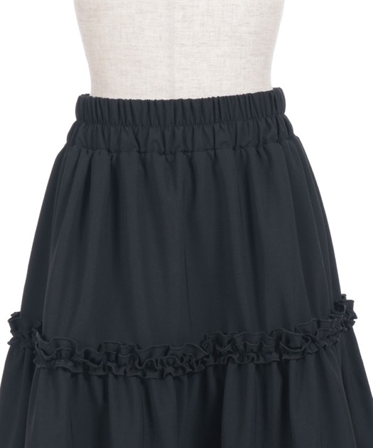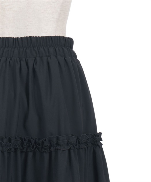 ギャザーたっぷりめでふわっと広がるシルエットながらも、落ち感のある生地で広がりすぎず上品な雰囲気の着用感です。