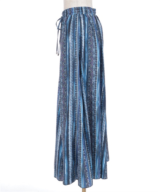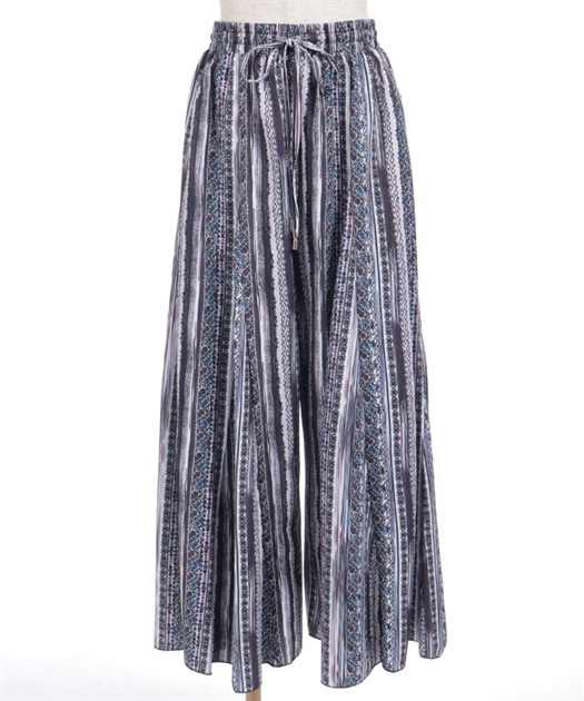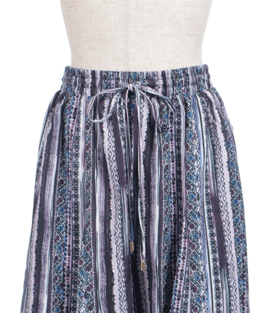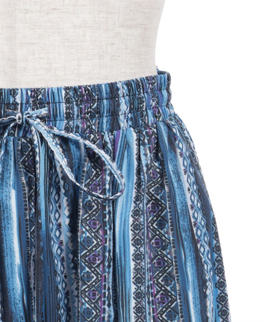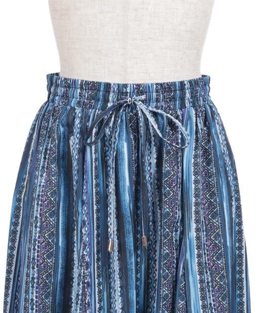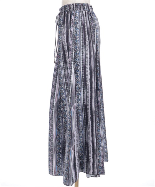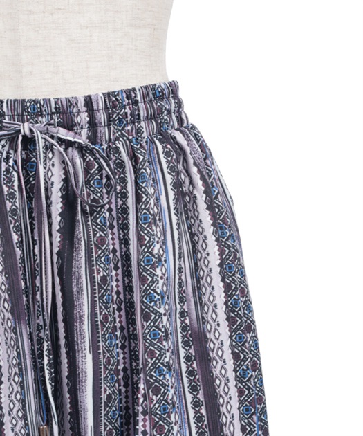 たっぷりとしたフレア感で、歩くたびに揺れる上品な印象に。切替ラインが立体感をつくり、広がりすぎずすっきりとしたバランスで着用できます。ウエストはゴム仕様でラクな穿き心地ながら、きちんと感のある見え方もポイントです。