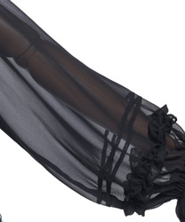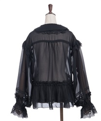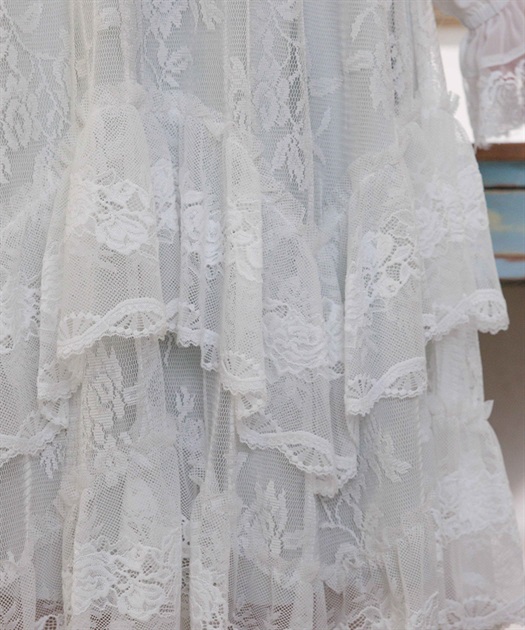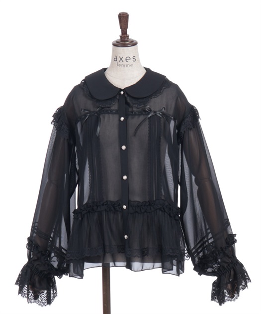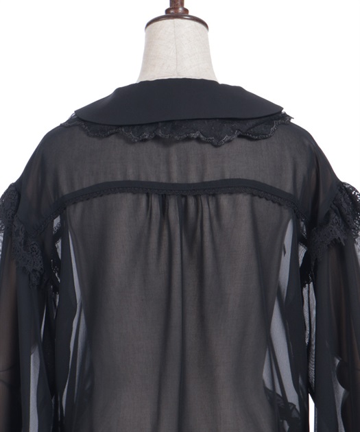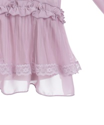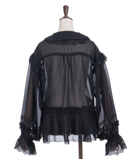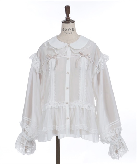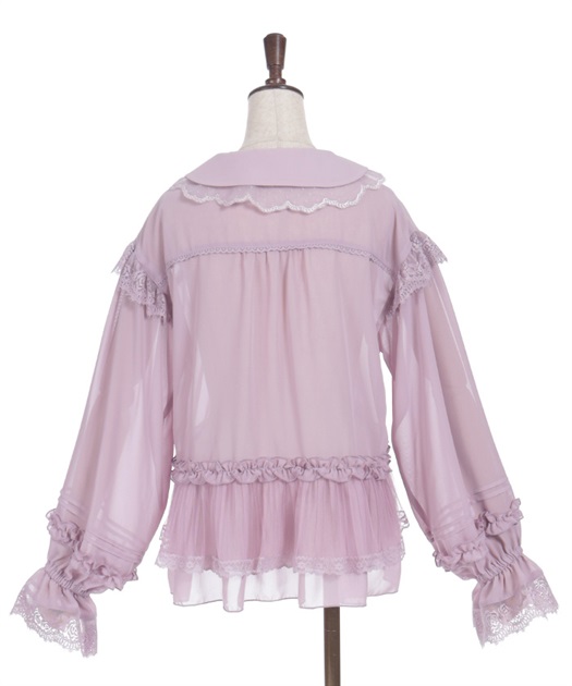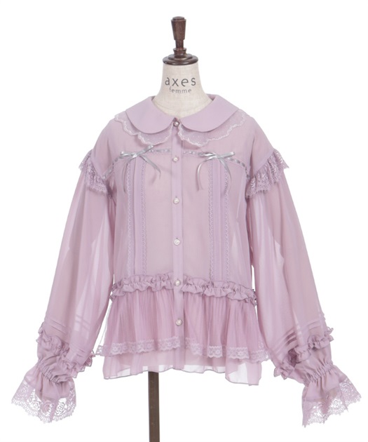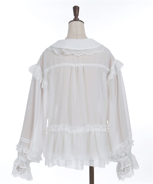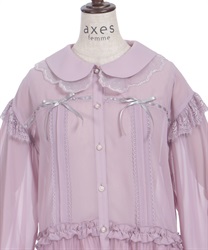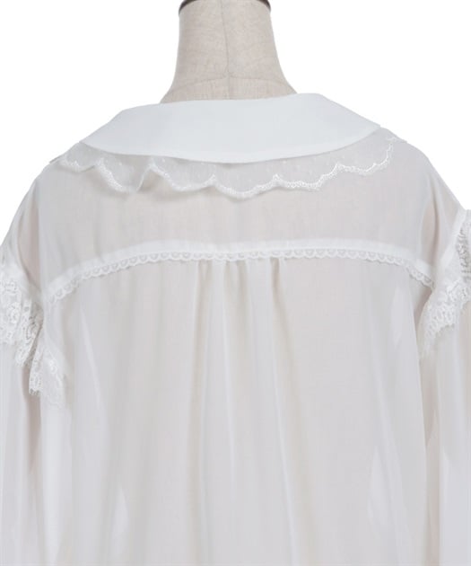 フロントや裾にあしらったレーシーなディテールがフェミニンな印象、袖のリボンデザインが可憐なアクセントに。きちんと感のあるシルエットで、甘さと上品さをバランスよく楽しめる一着です。