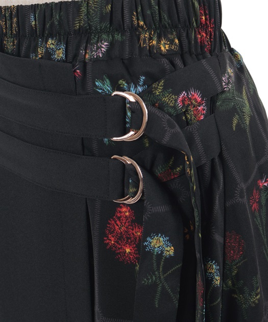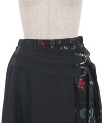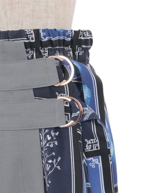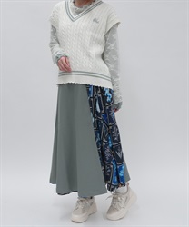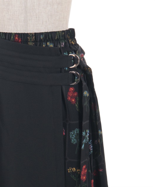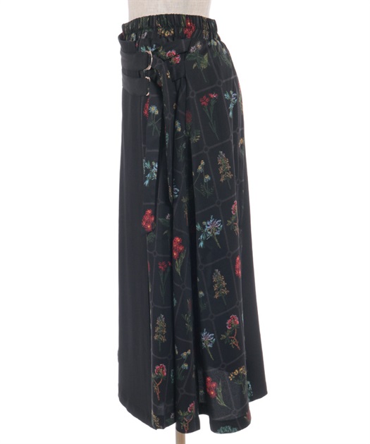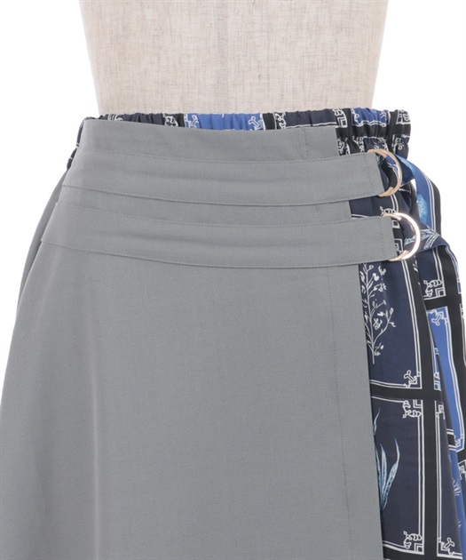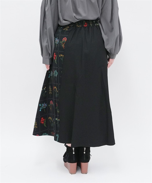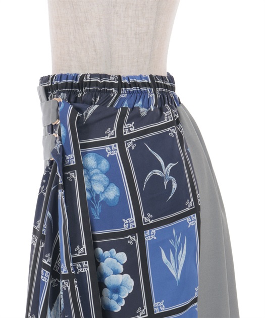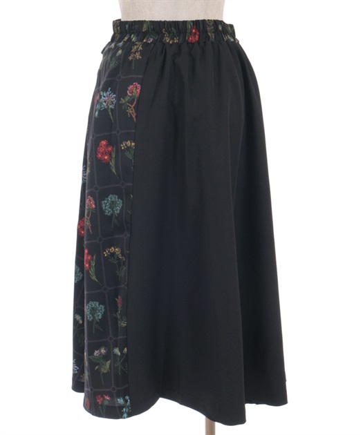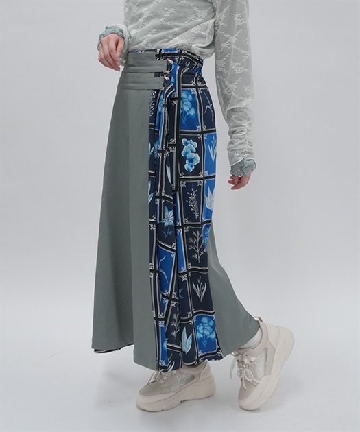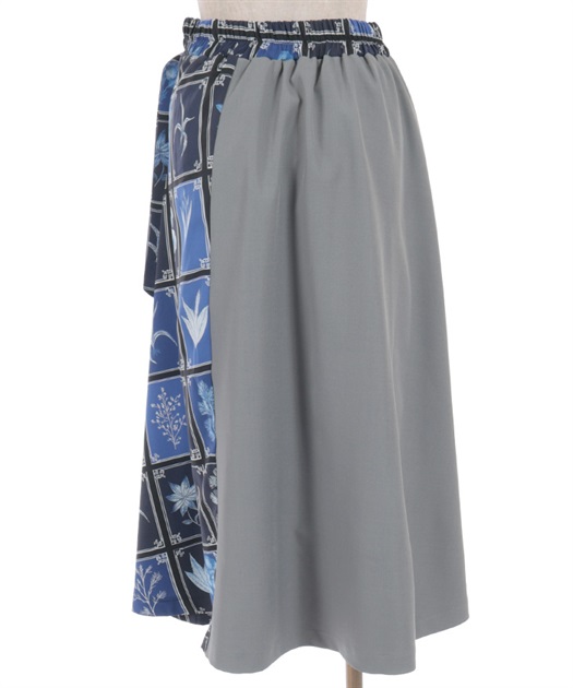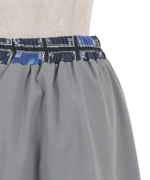 異なる表情を楽しめるプリント切替デザインで、着こなしに奥行きを添えるスカート。