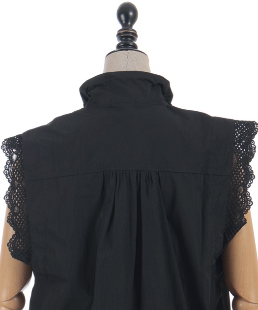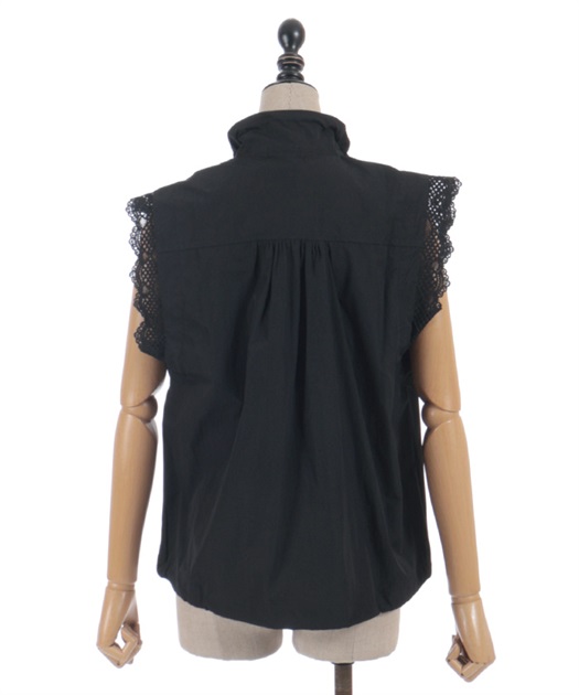 立体感のあるフリルディテールが目を引き、重ねるだけで装いに奥行きと女性らしさをプラスします。軽やかな着心地でバランスが取りやすく、シンプルなスタイリングにも映える一着です。
