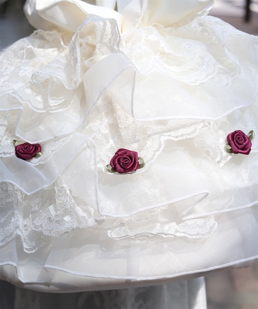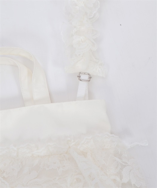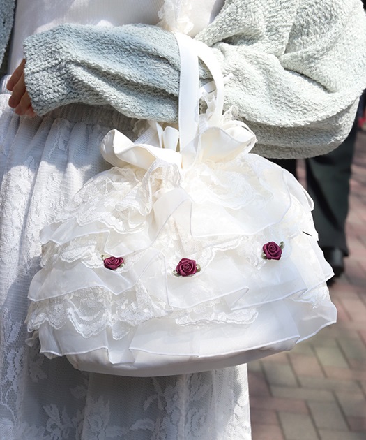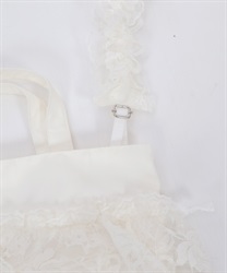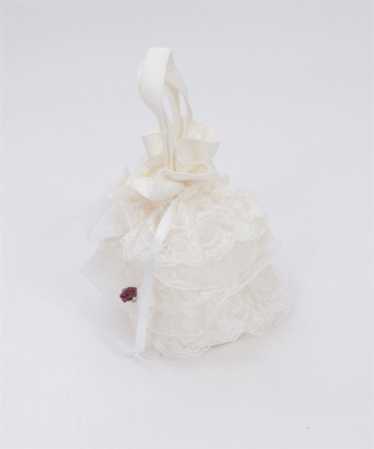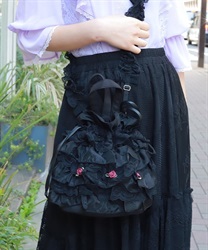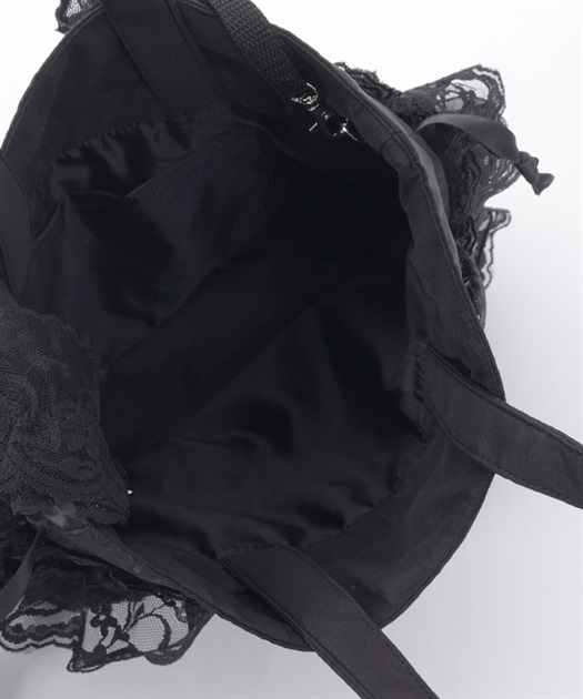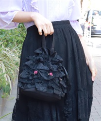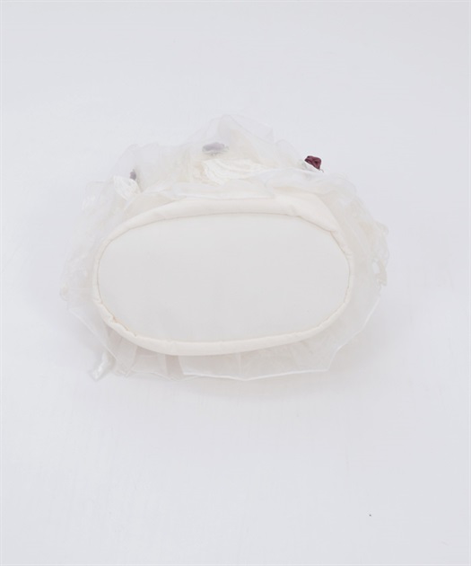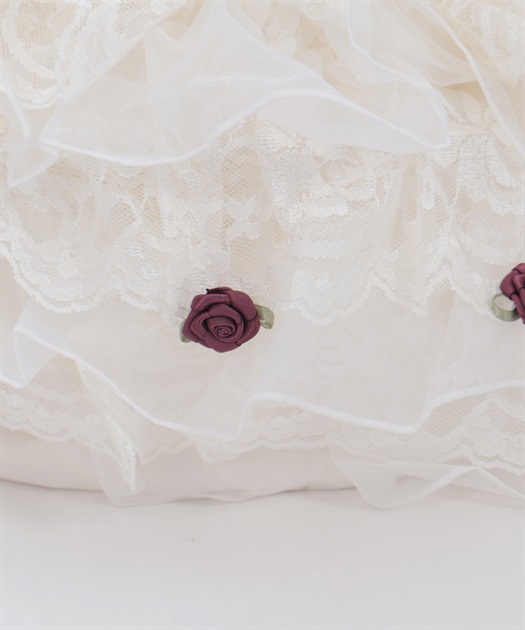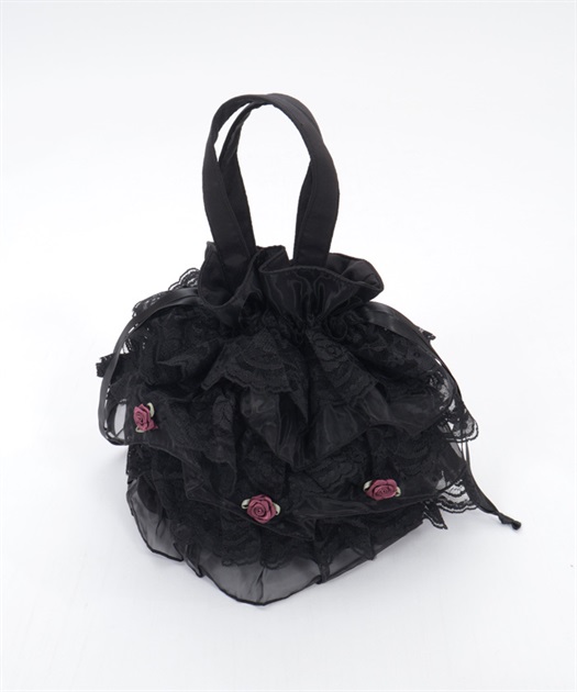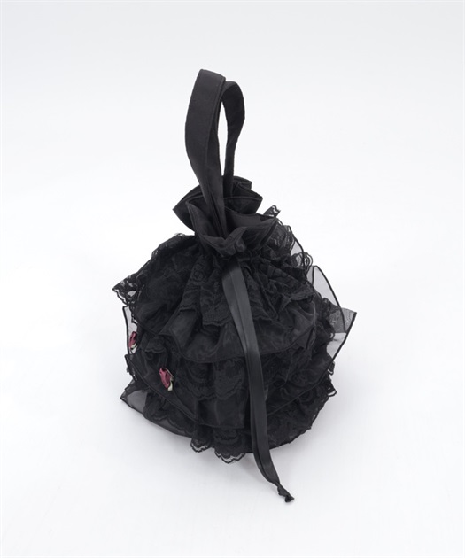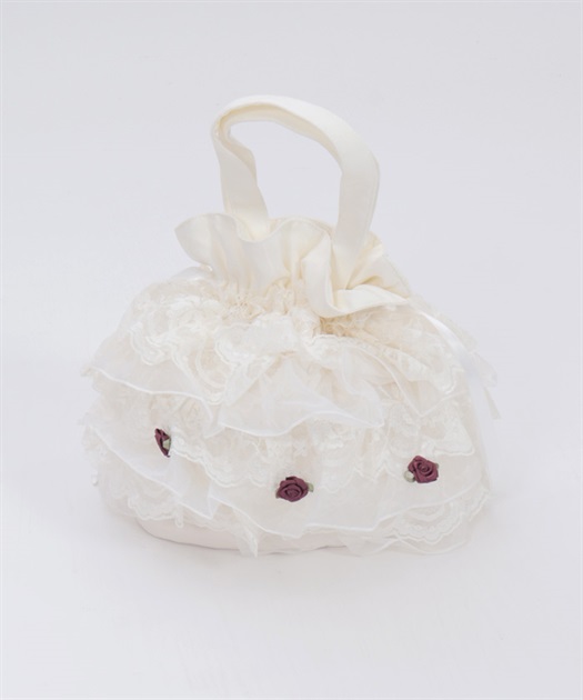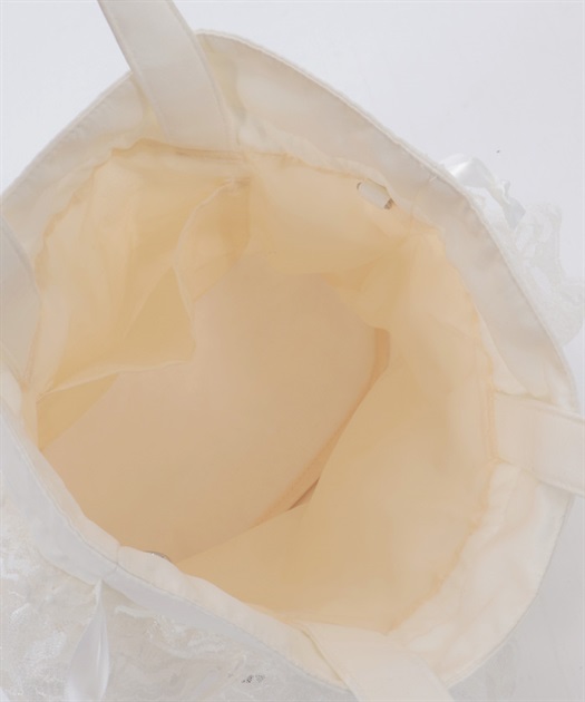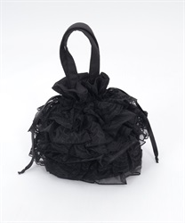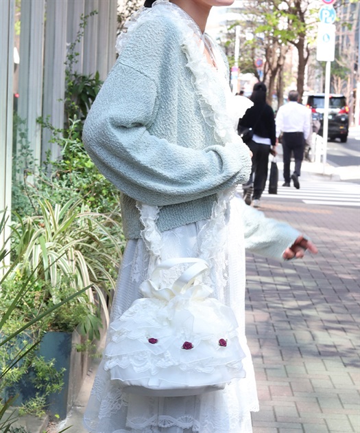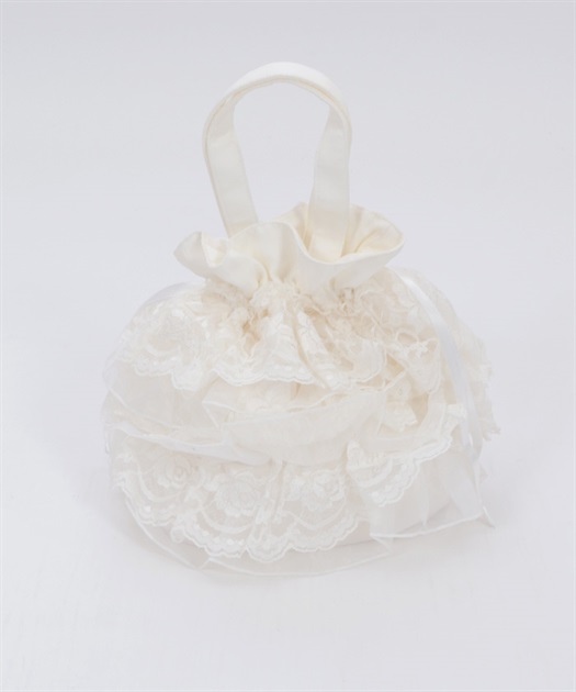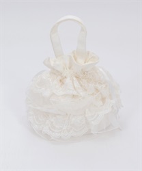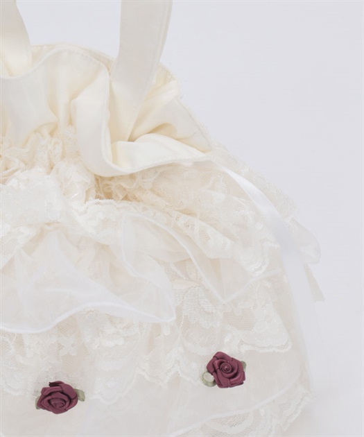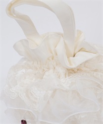 繊細なレースと軽やかなオーガンジーが重なり合う、華やかで上品なバッグです。