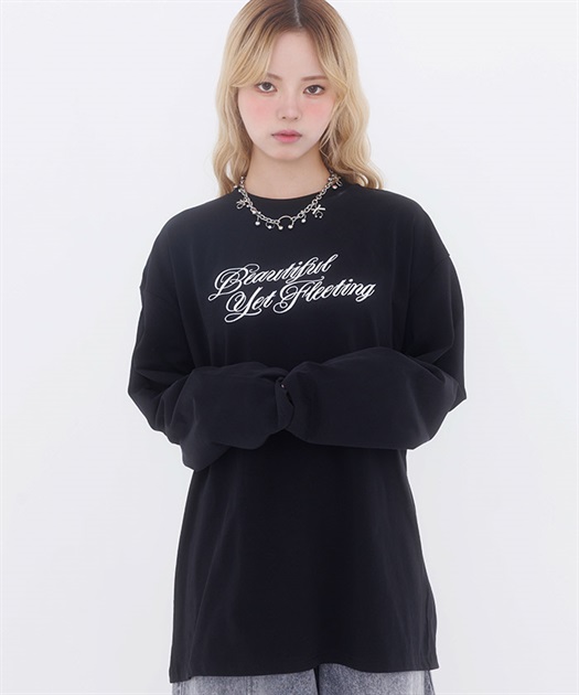 立体感のある綺麗な刺繍ロゴが印象的なロンTee。
