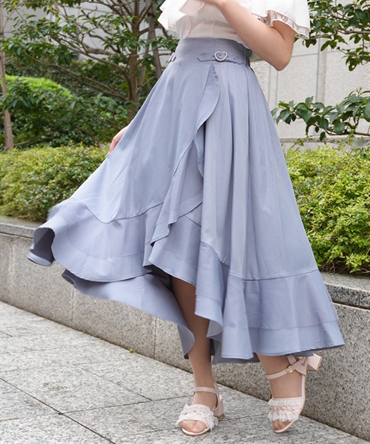 ウエスト部分はハートバックルをあしらったベルトのデザインがガーリーなポイントです。
