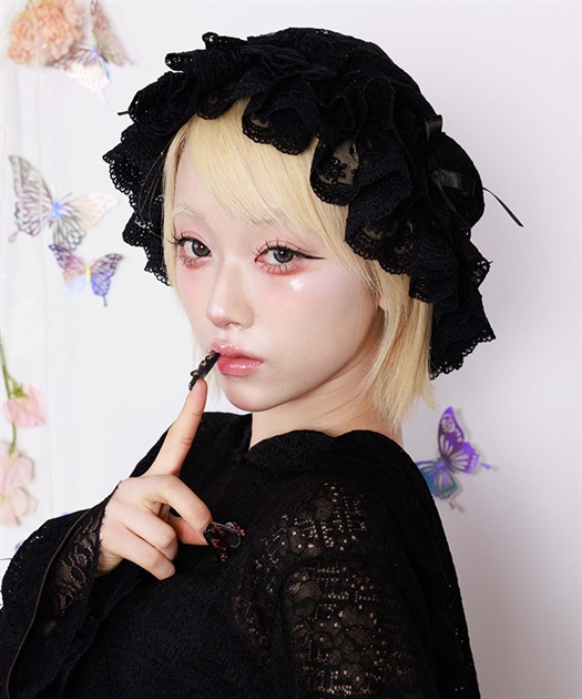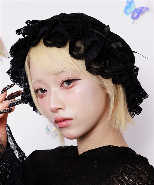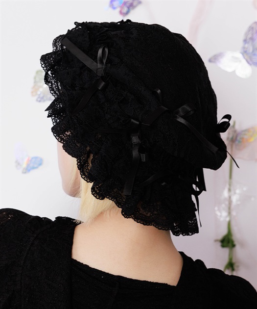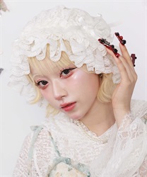 繊細なレースにシフォンを重ねた、やわらかな雰囲気が魅力のレースキャップ。