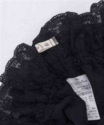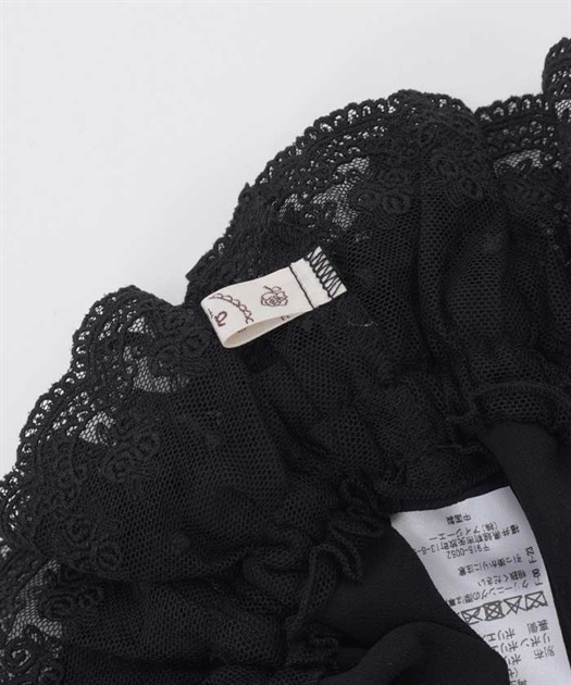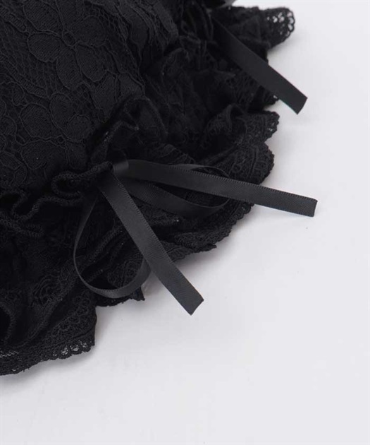 軽やかなレースに薄手のシフォンを重ねることで、ふんわりとした奥行きのある表情に仕上げました。縁にはスカラップレースをあしらい、細部まで上品なアクセントをプラス。リボンでフィット感を微調整できるため、快適に着用できるのも嬉しいポイントです。