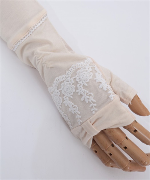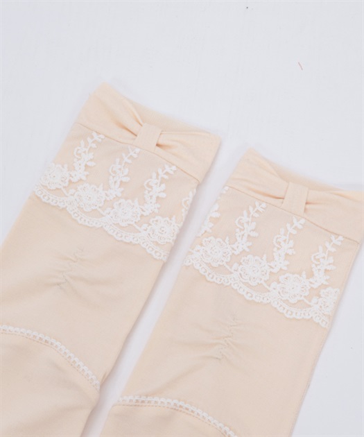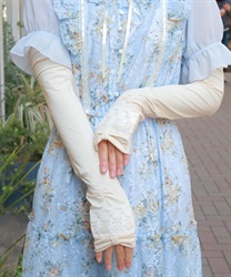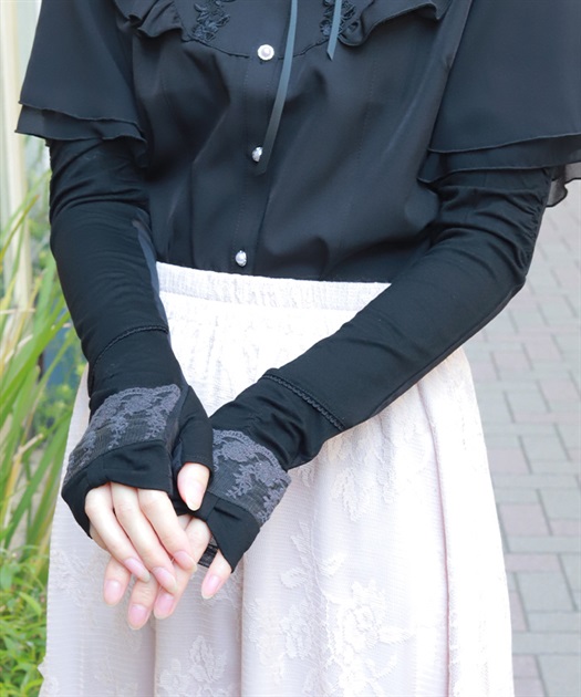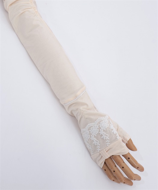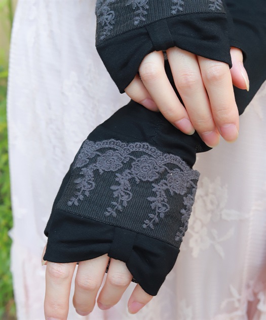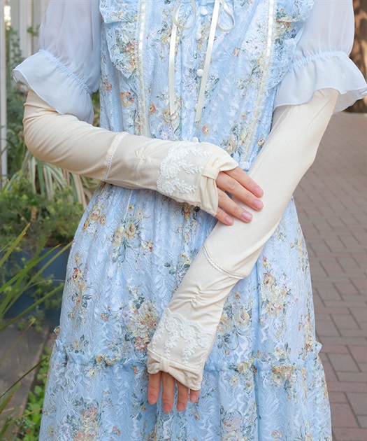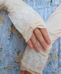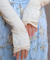 リボン×レースのフェミニンなUVロング手袋です。