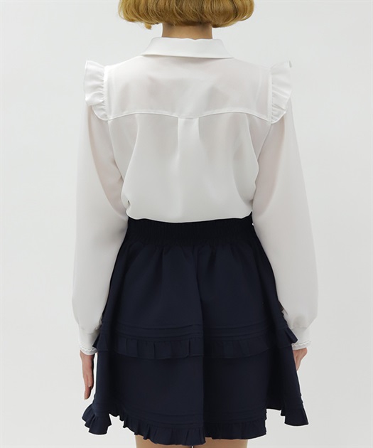 肩のフリルがガーリーなシルエットを演出します。