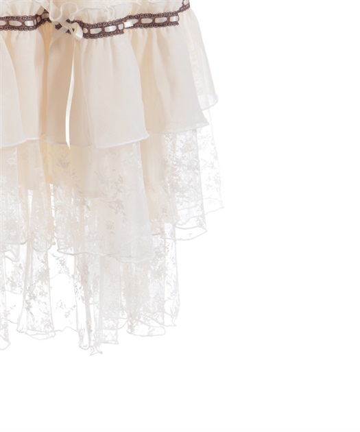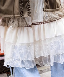 レースやフリルを贅沢に使用し、ナチュラルでガーリーな印象に。ウエスト部分はゴム仕様で着心地も快適です。細部までこだわった繊細なレース使いが、着るだけで特別感を与えてくれるアイテムです。