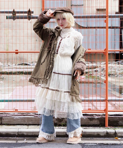 ハイネックインナーやレースインナーを合わせればクラシカルな印象に、ゆったりとしたカーディガンや羽織と重ねれば、柔らかな雰囲気のカジュアルスタイルにも。ブーツやベレー帽を合わせて、季節感のあるナチュラルコーデを楽しめます。