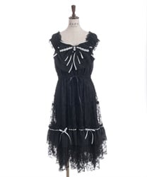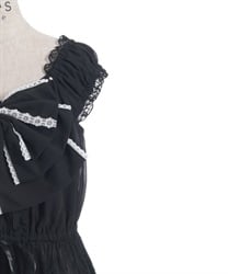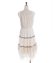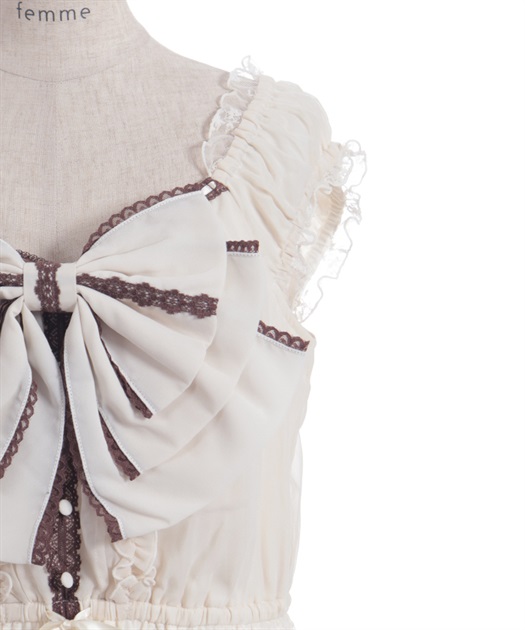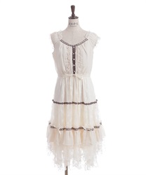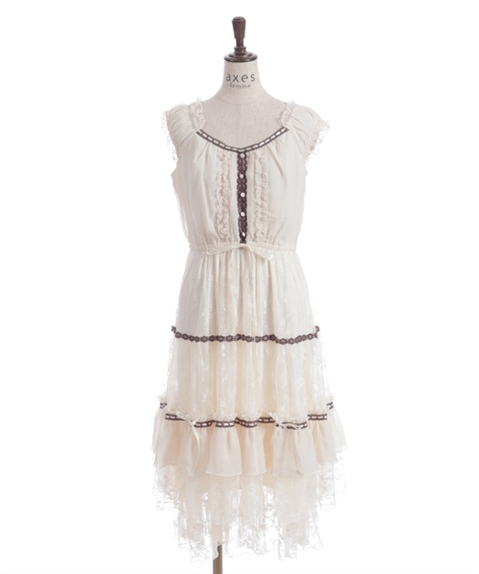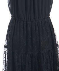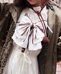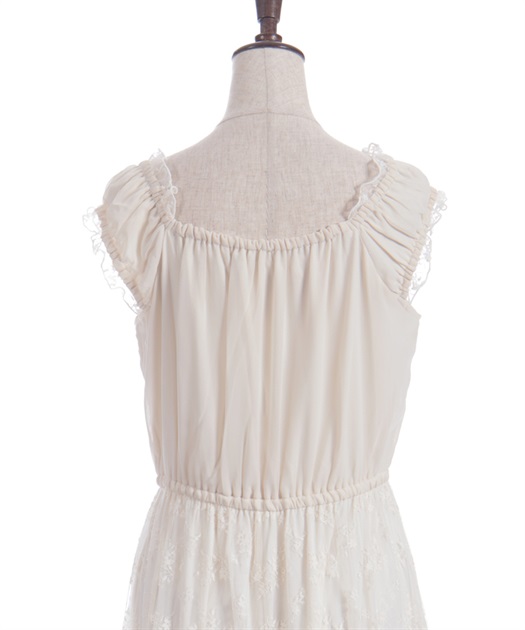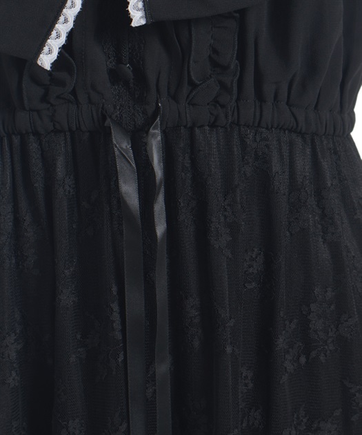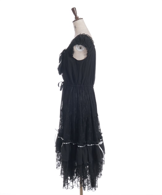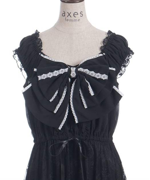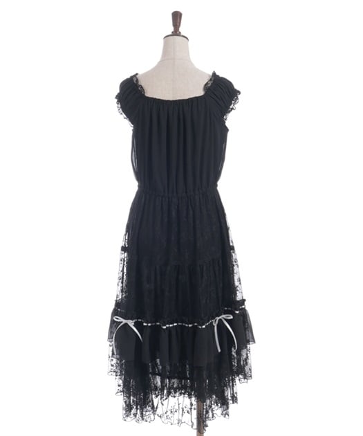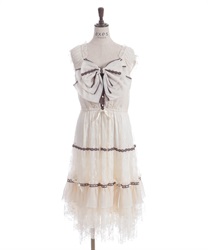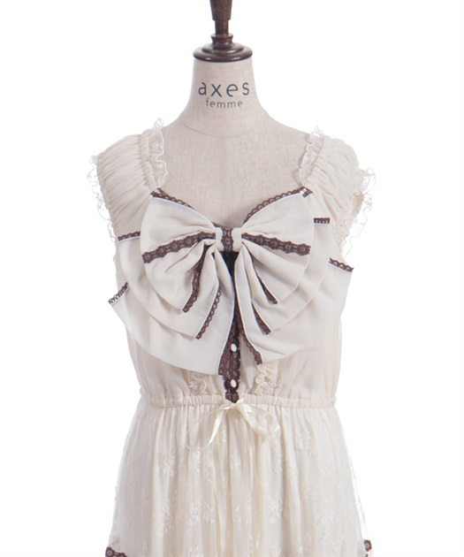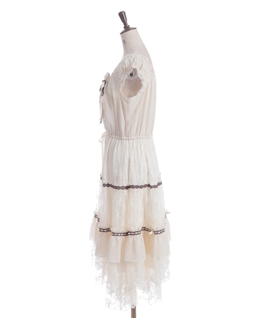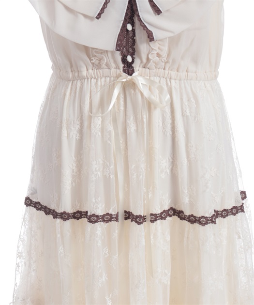 たっぷりとあしらわれたレースがロマンティックなチュニック丈のワンピース。軽やかなシフォン素材のリボンブローチがセットになっており、胸元やウエストなどお好みの位置にアレンジして楽しめます。ふんわりと広がるシルエットがやさしい雰囲気を演出します。