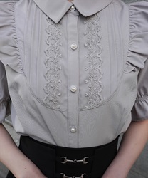 チュールレースをふんだんにあしらった、クラシカルな単色のブラウス