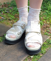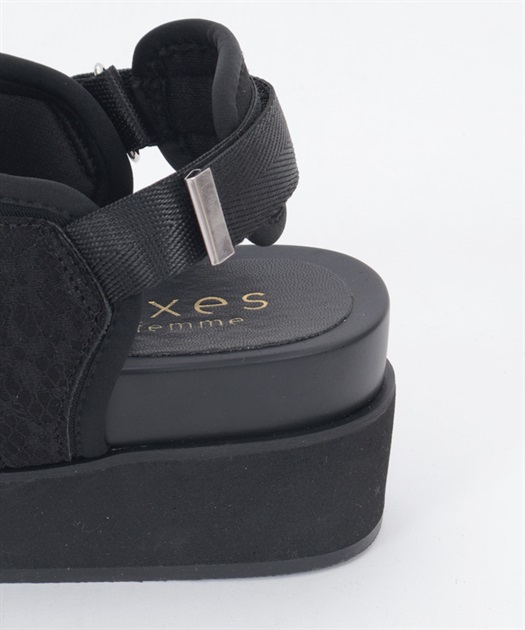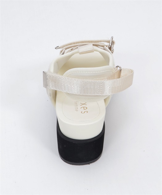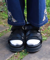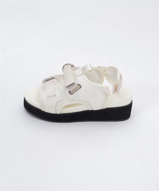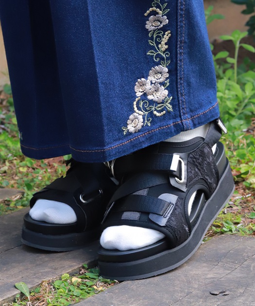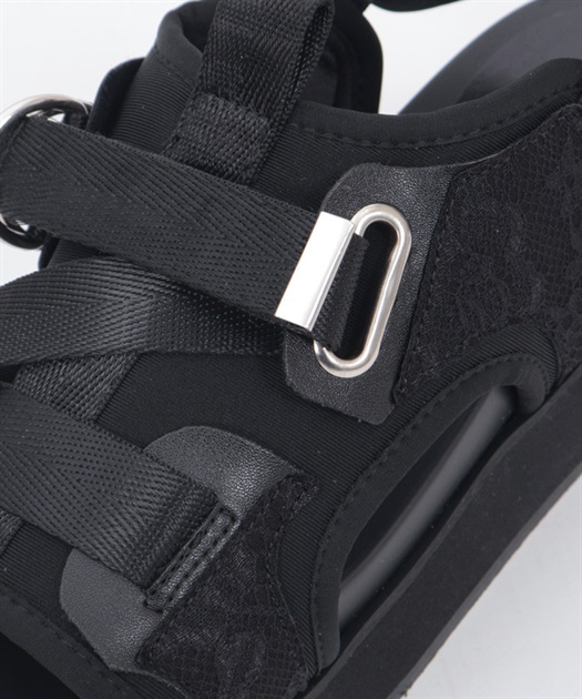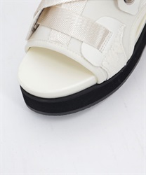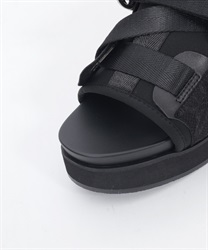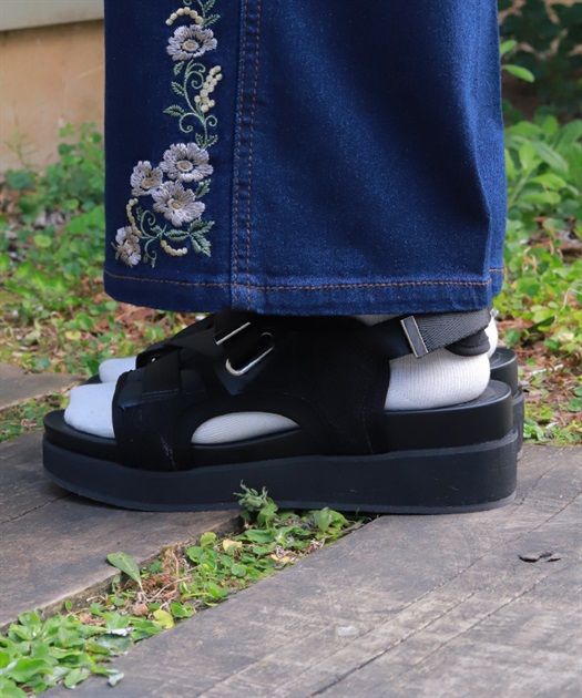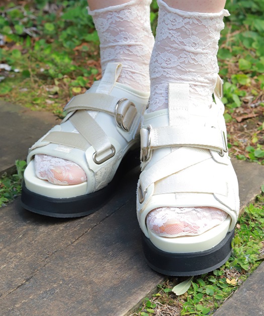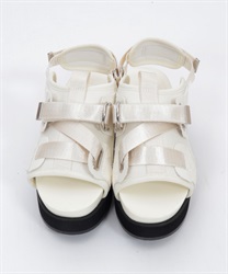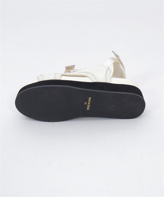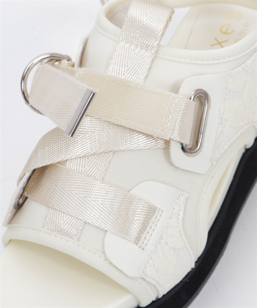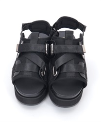 太めのクロスベルトが足元をしっかりホールドしつつ、程よい抜け感を演出します。