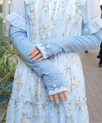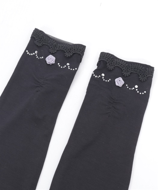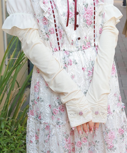 配色の巻きバラがアクセントのUVロング手袋です。