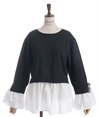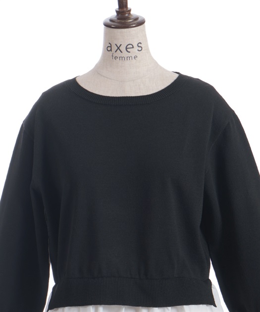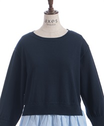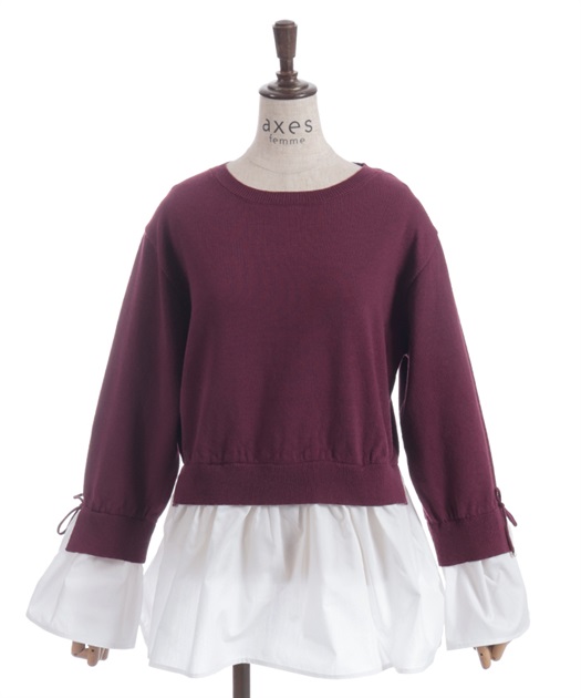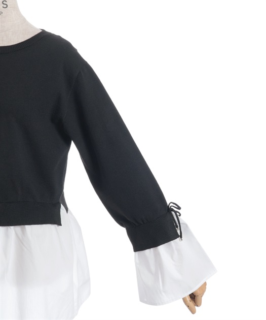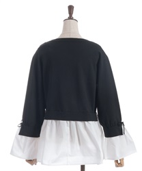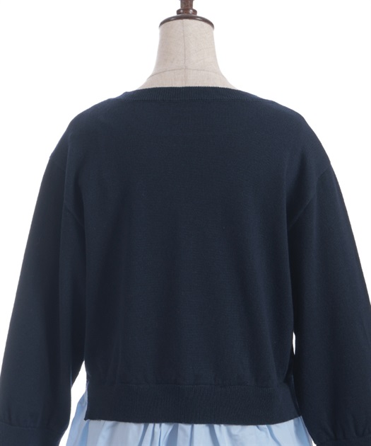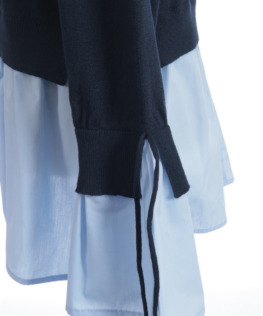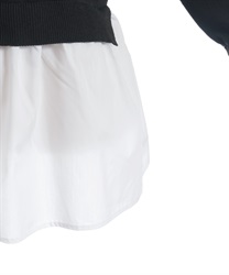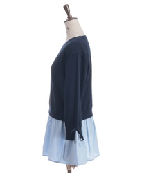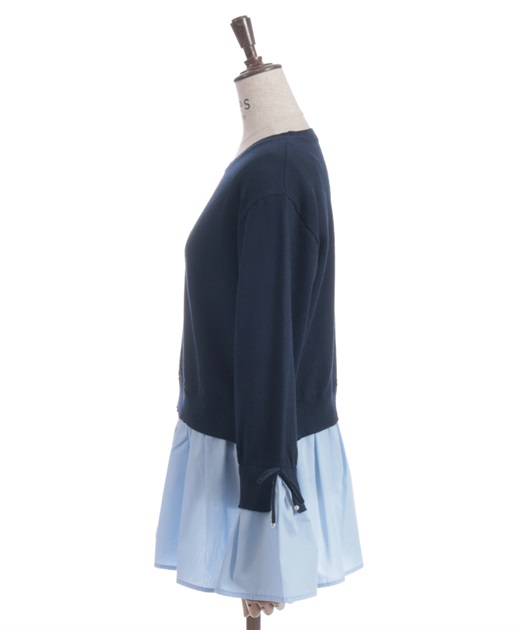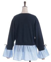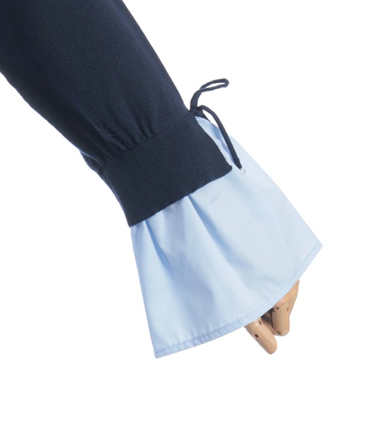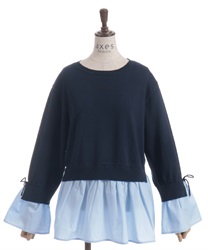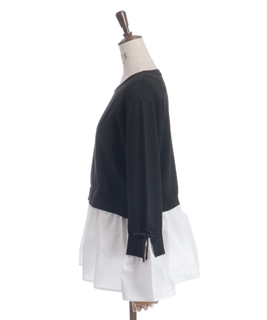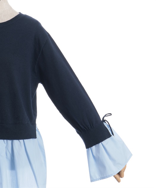 裾と袖のシャツ生地はギャザーフリルの広がりがキレイなデザイン。