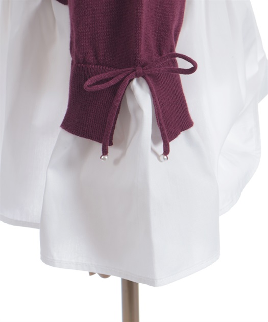 袖口のニットリボンの先にはパールを付けてフェミニンに。