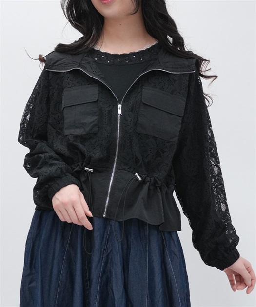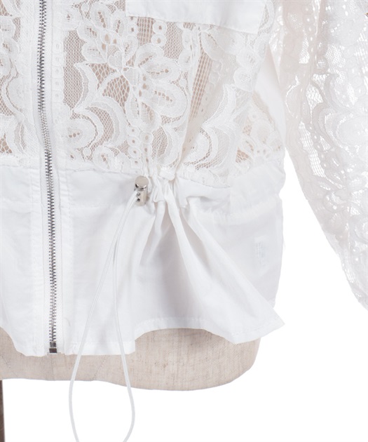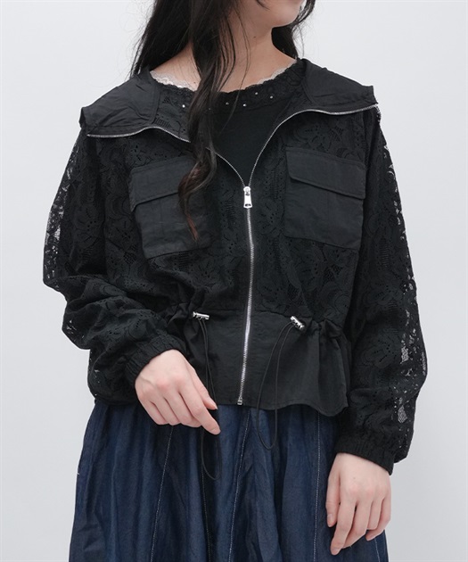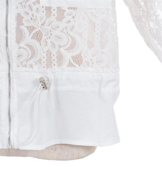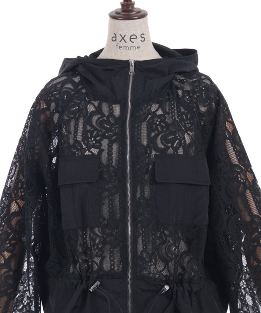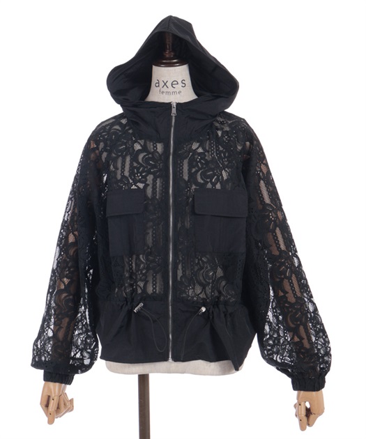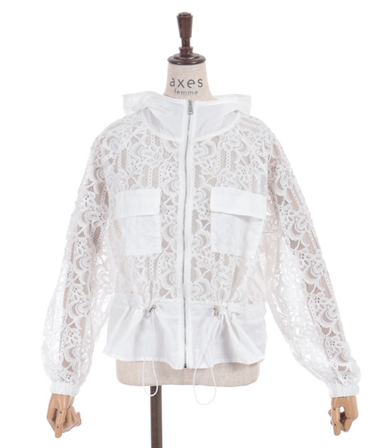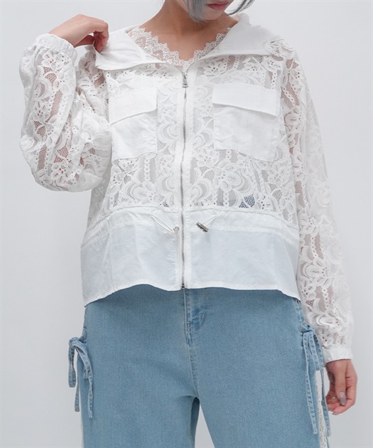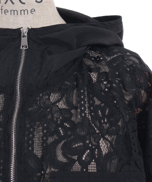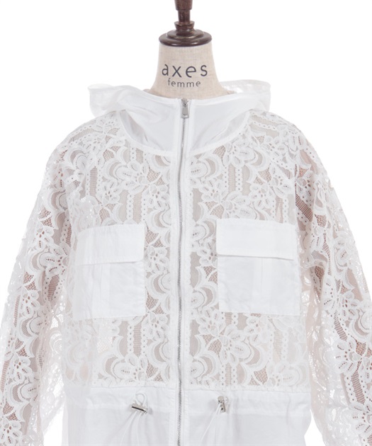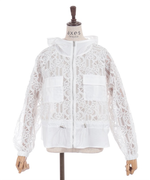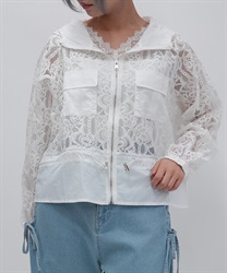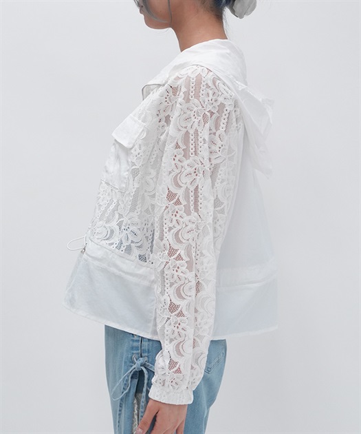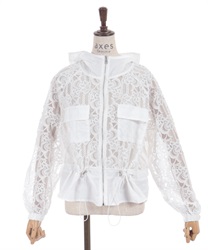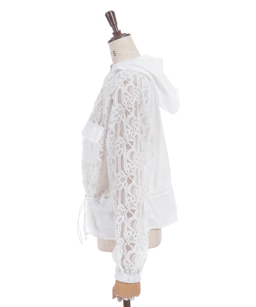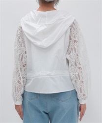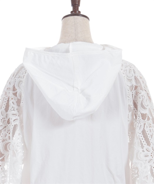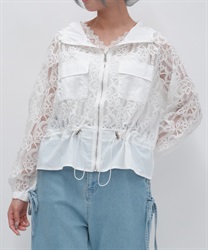 軽やかな総レース素材がやさしい透け感を生み、コーディネートに奥行きをプラスしてくれる一着。カジュアルなパーカーデザインに、繊細なディテールを掛け合わせることで、ほどよく華やかな印象に仕上げています。ゆとりのあるシルエットで、さっと羽織りやすいのも魅力です。