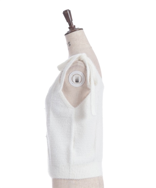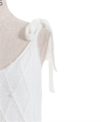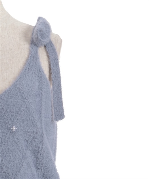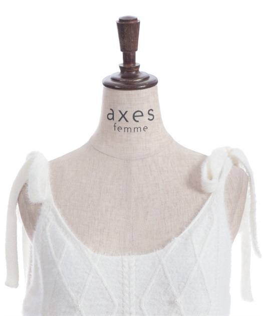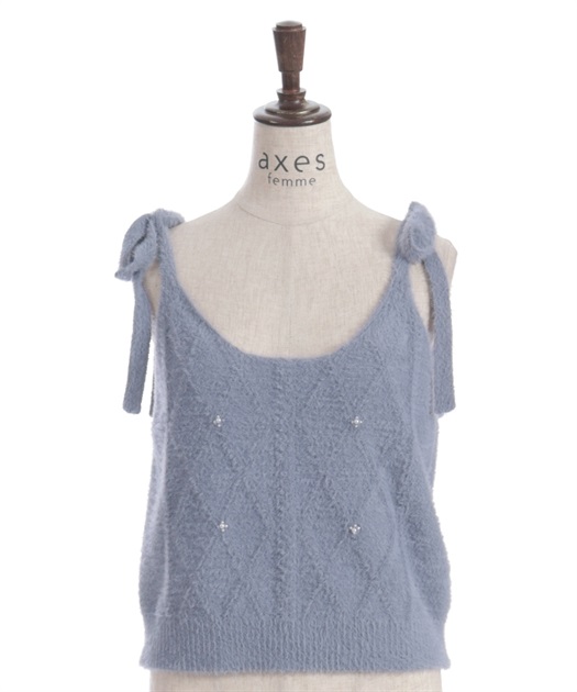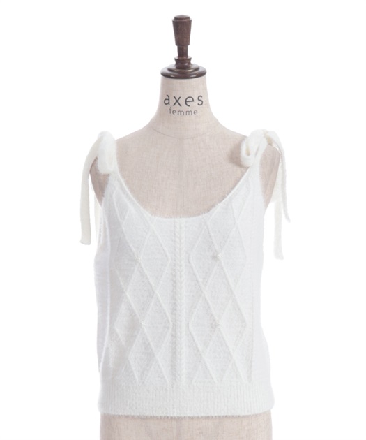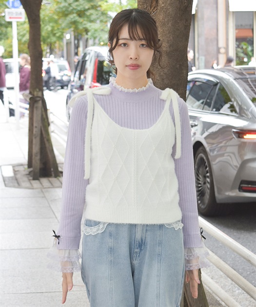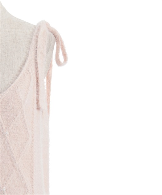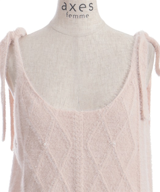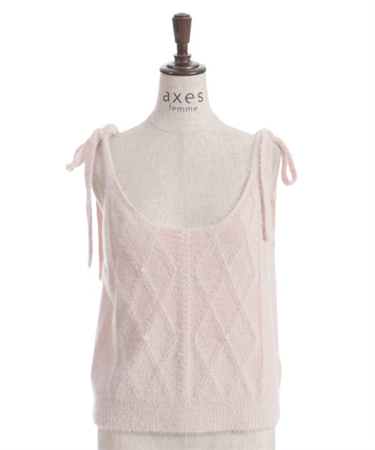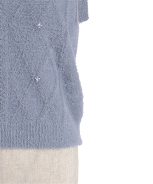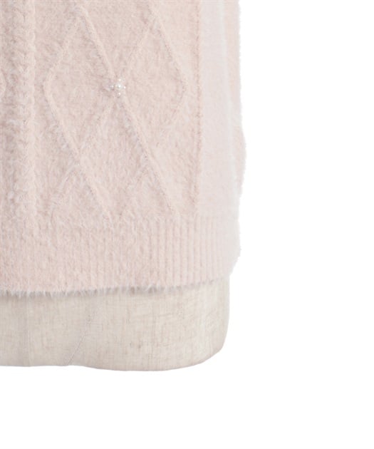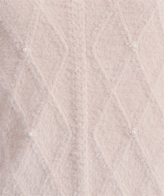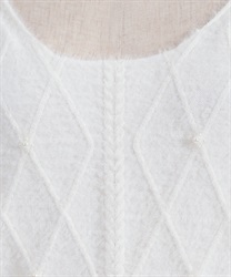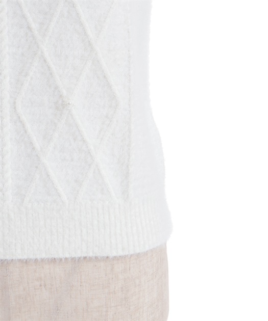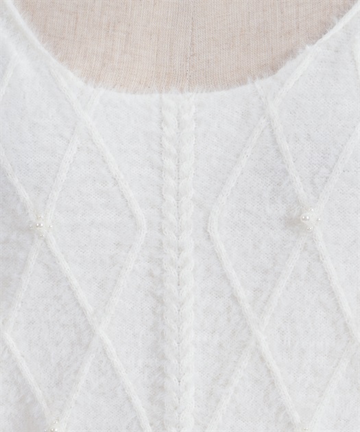 ケーブル編みにパールをあしらった華やかなデザイン。