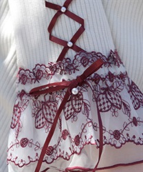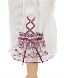 オリジナル柄の苺刺繍のレースは、身頃の色によってカラーを変えたこだわりのデザイン。