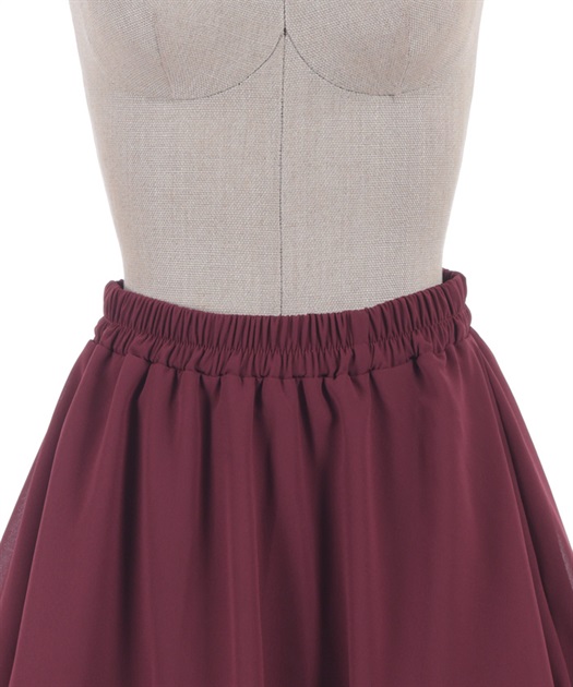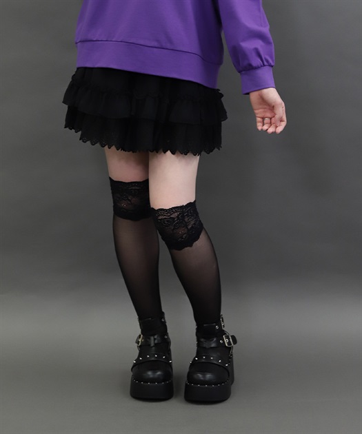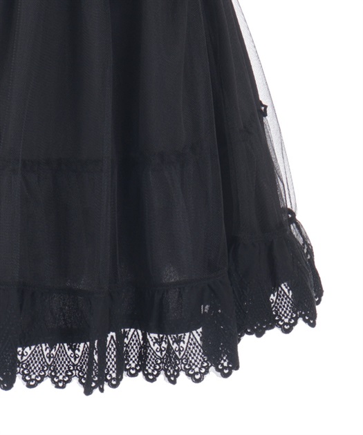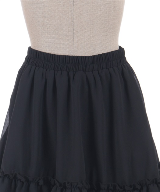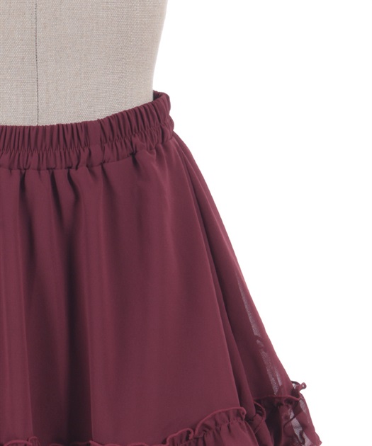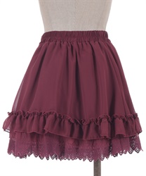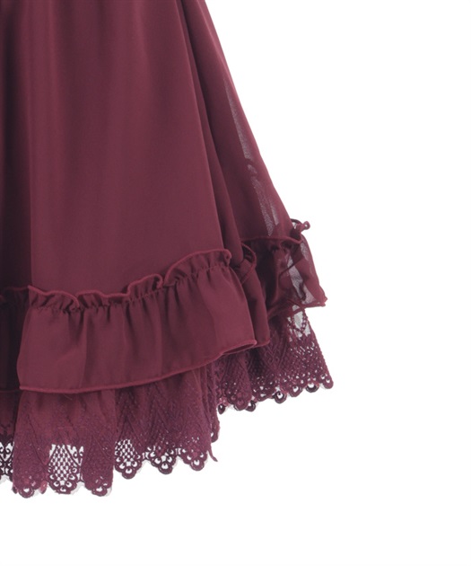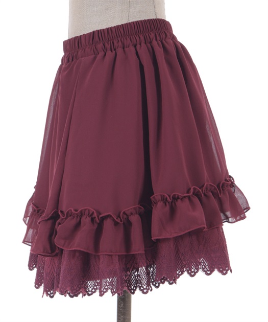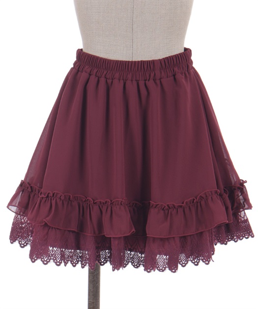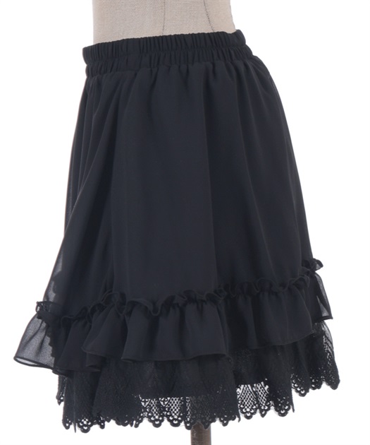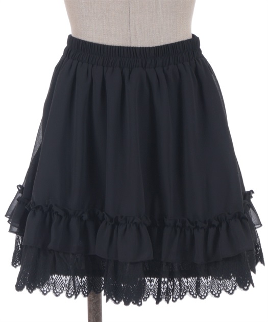 裾にゴシック感のあるレースをたっぷりとあしらったシフォンミニスカートです。