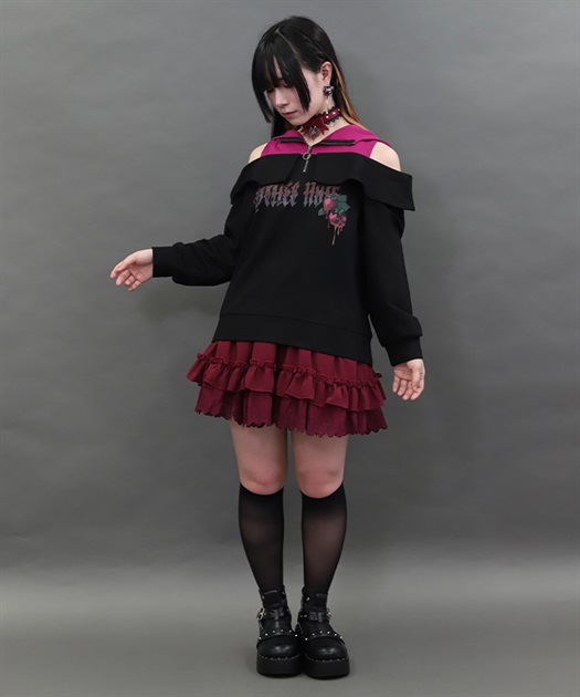 こちらはポイズンベリー肩あきパーカーと合わせたコーデもおすすめです。
