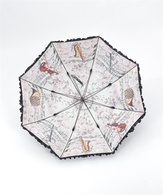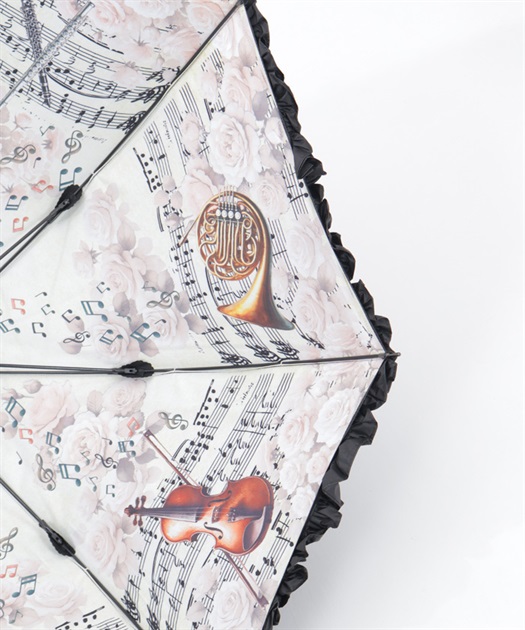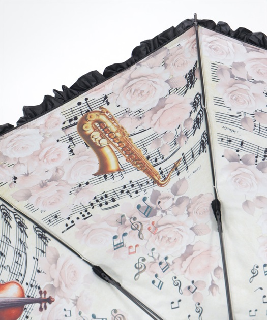 axes femmeオリジナルの音楽柄を内側にプリントした晴雨兼用パゴダ傘です。